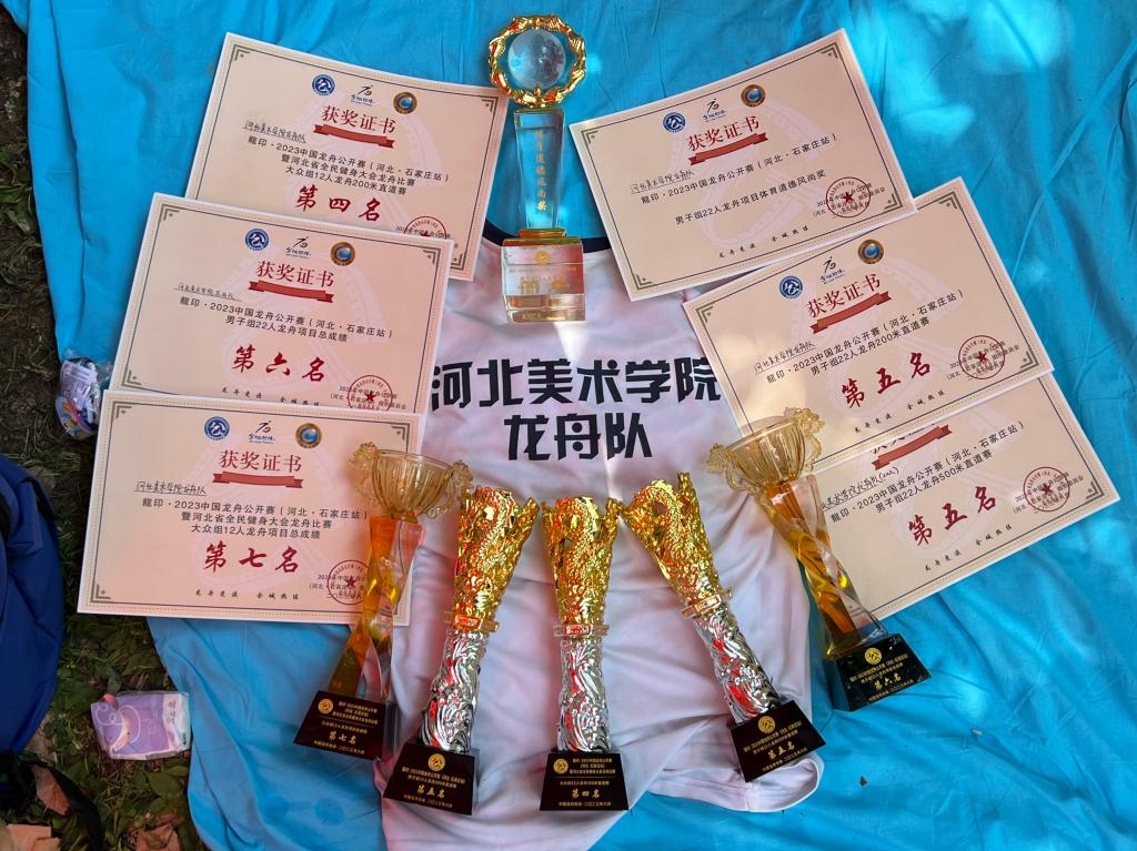 我校于6月初接到中国龙舟公开赛的通知,迅速选派人员组队,时间紧迫,大家放弃休息时间,无惧酷暑,自发训练,比赛场上鼓足干劲、充满信心,最终取得重大突破,充分展现出河美学子“自信自立 敢为人先”的精神风貌。接下来,学校将继续加强队伍建设,发扬默契配合、拼搏进取的竞技精神,开启新征程,迎接新的挑战,力争在更多赛事中再创佳绩。