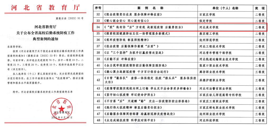 近日,河北省教育厅公布了全省高校后勤系统防疫工作典型案例评选结果,国产精品爽爽久久久久久竹菊-精品少妇人妻一区二区-国产乱人妻精品一区二区-香蕉精品偷在线观看-少妇一夜三次一区二区报送的案例《“疫”线有你“后”方有我 战新冠疫情 后勤勇担当》被评为二等奖。
