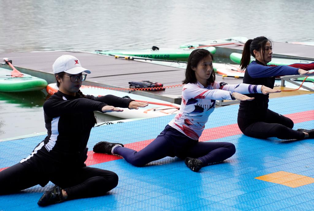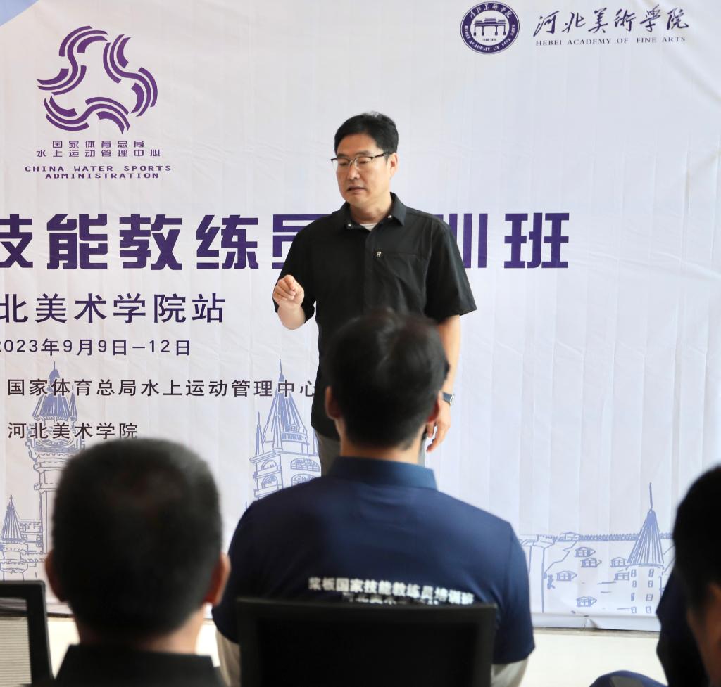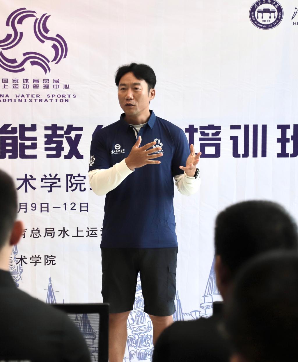 国家体育总局水上运动管理中心桨板培训师何海颜和马飞飞分别介绍了本期培训的主要内容,并指出,作为一项水上运动项目,桨板训练非常辛苦,但是在训练过程中对大家意志力的磨练起到了非常积极的作用,希望各位老师能够克服困难,顺利毕业。