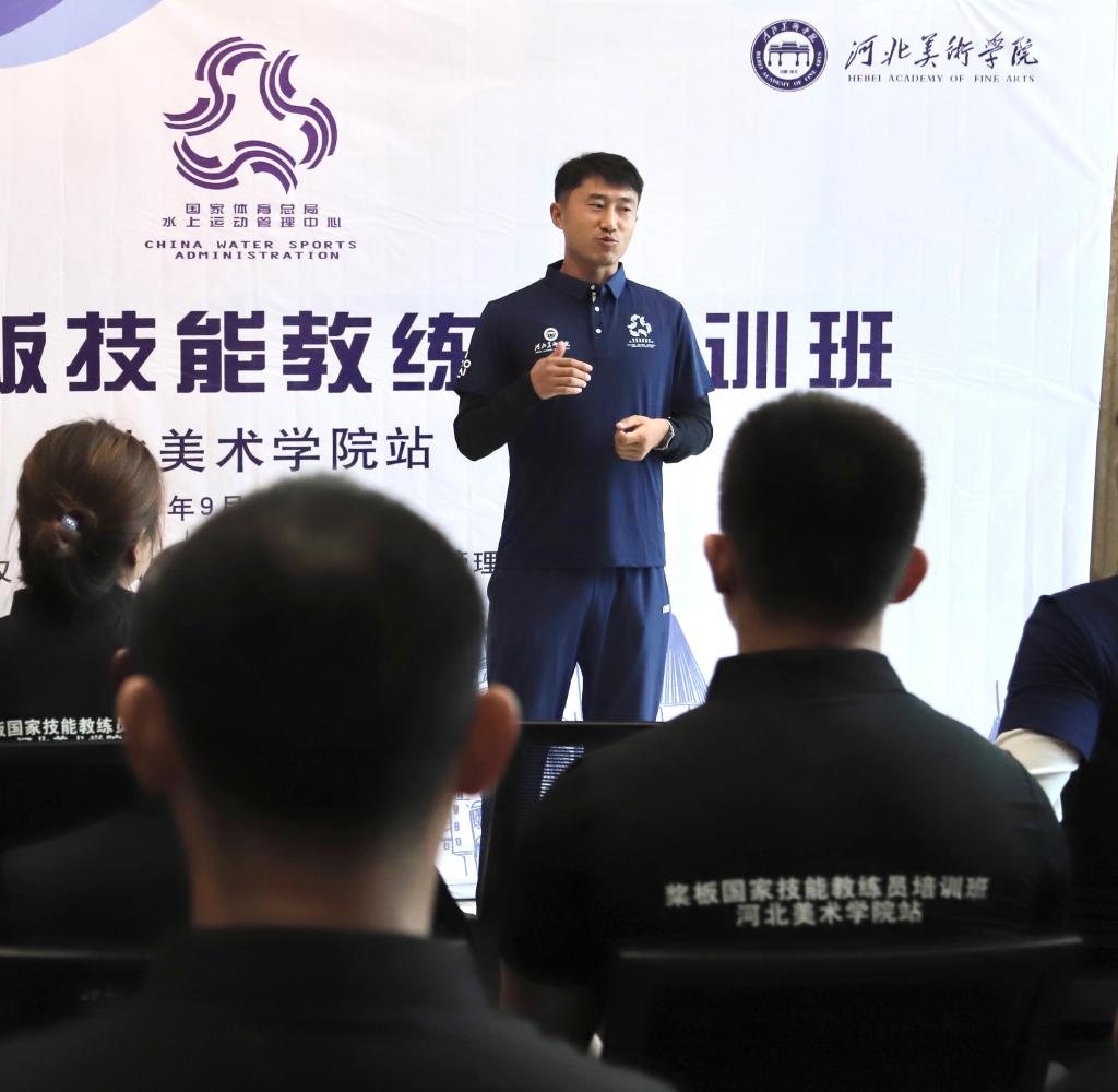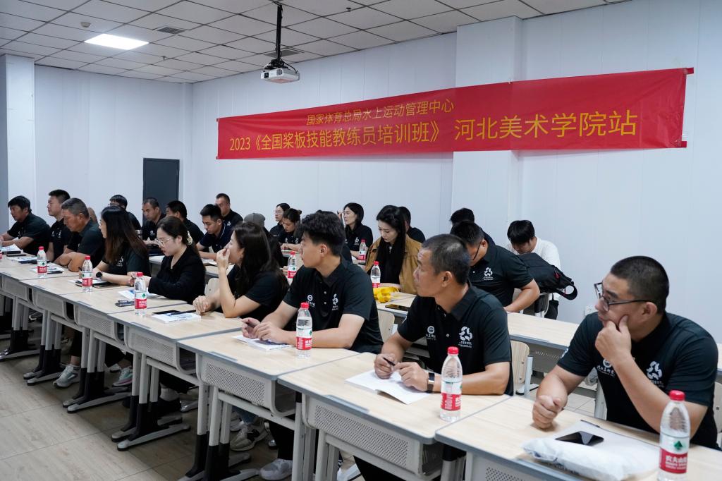 开班仪式后,本期桨板技能教练员培训正式开班。据悉,此次培训为期4天,主要讲授初级桨板教练员理论知识、技术动作以及桨板一星、二星运动水平的教学内容。