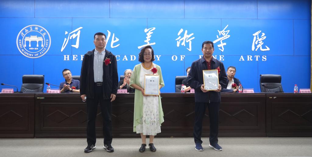 我校校长甄忠义、副校长张子言,教务处处长王杰,科研处处长张淼,发展规划处处长张立阳,非遗研究中心主任、设计学院院长董小龙。仪式由非遗研究中心副主任唐景词主持。