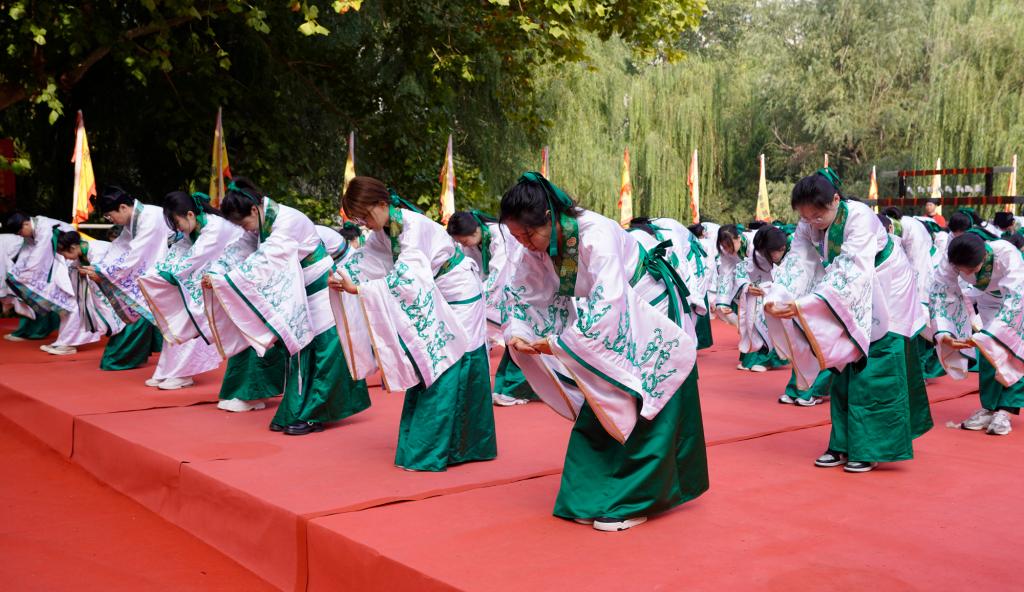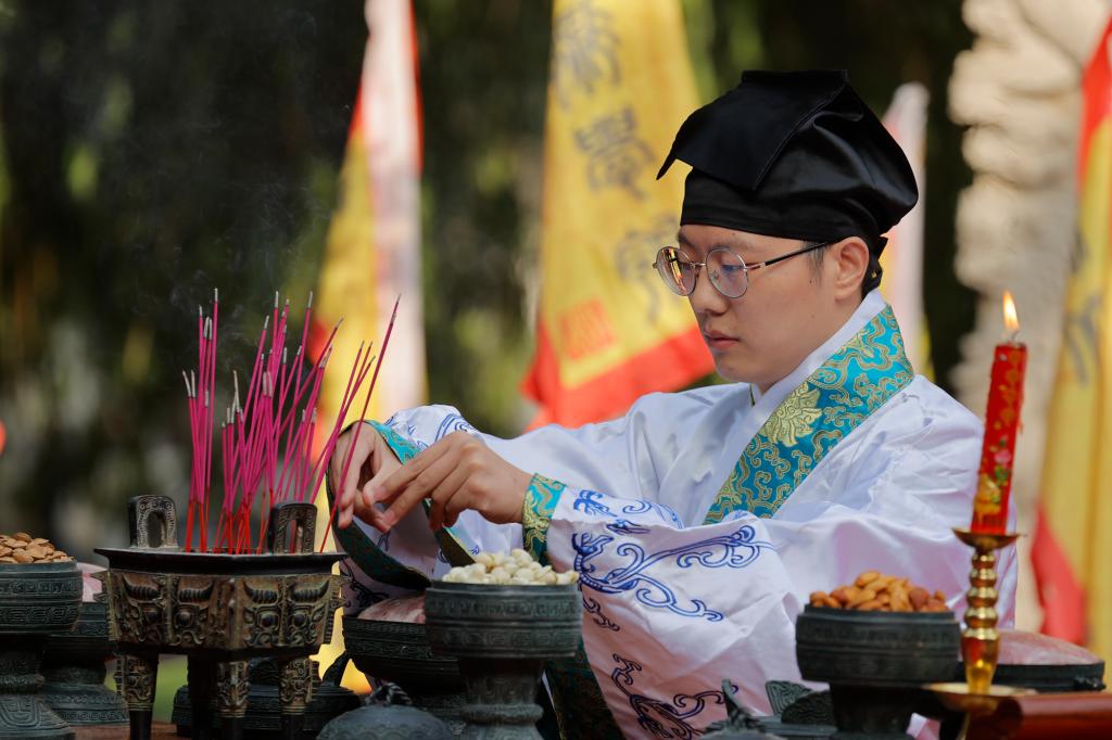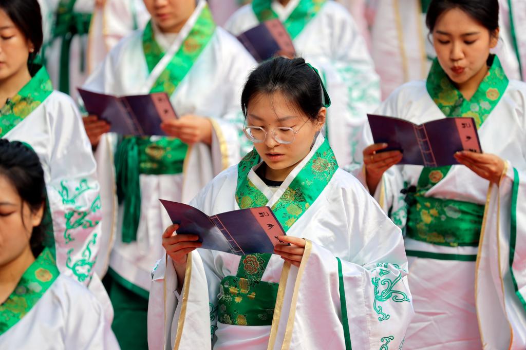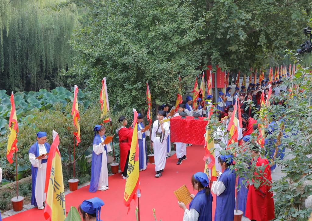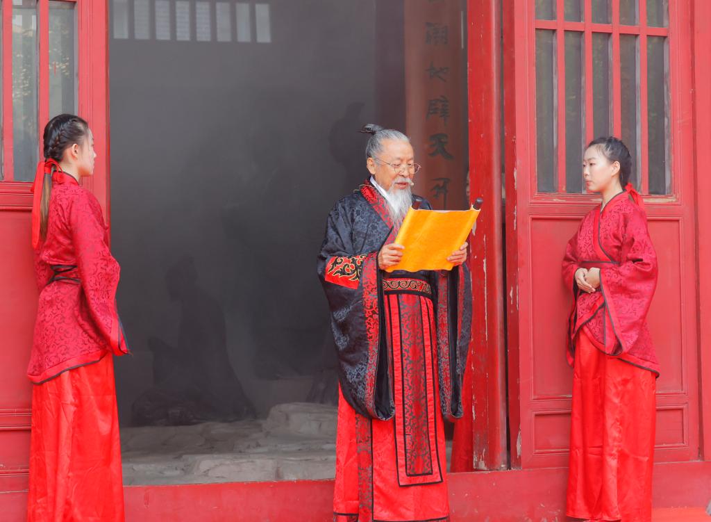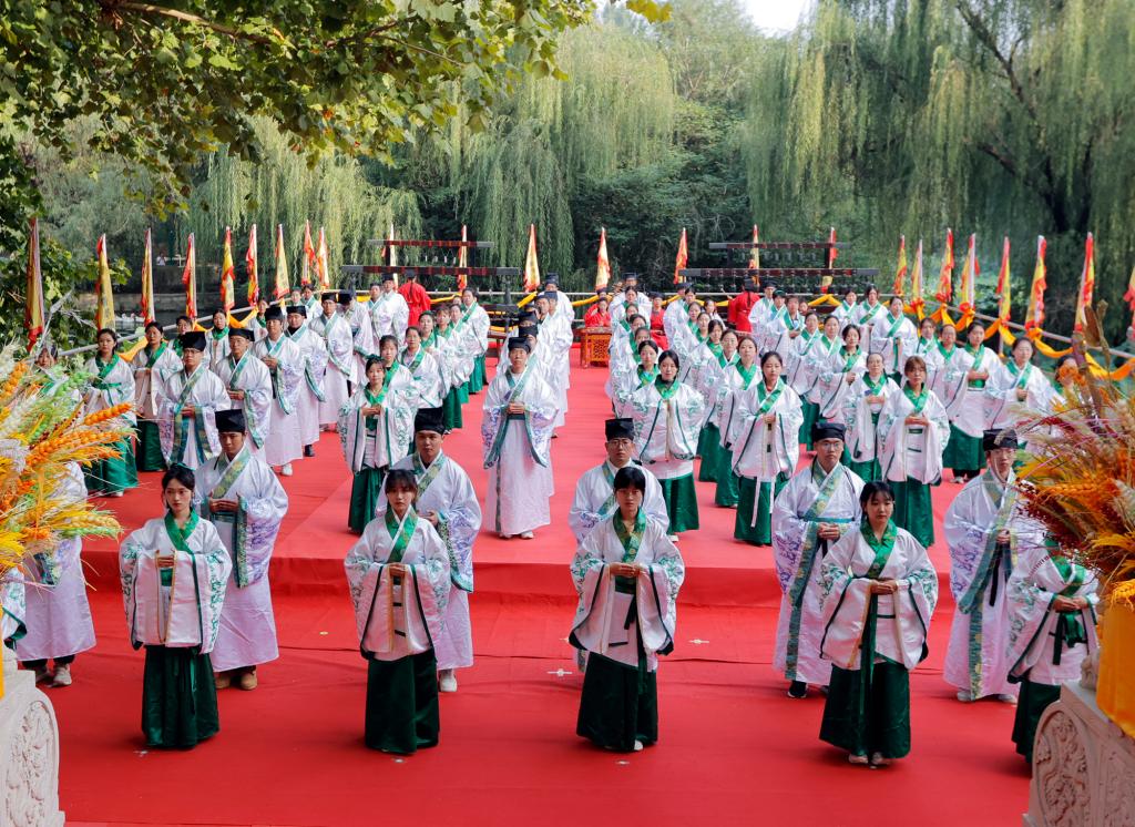 至于辰时,钟鸣三声,彩旗飘扬,庄重威严。众人身着峨冠博带之汉服,齐颂儒家之圣经《论语》,敬礼先贤。羽籥佾舞蹁跹,古乐声声韵,清音悠悠扬,再现古老仪制的优雅端庄。