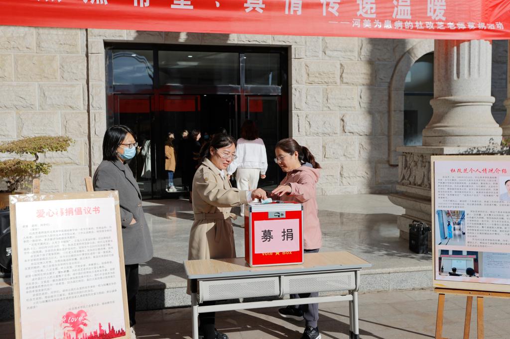 11月6日,我校在新综合楼前组织捐款活动,为基础教学部杜改芝老师爱心募捐,用真情传递温暖,以爱心点燃希望。