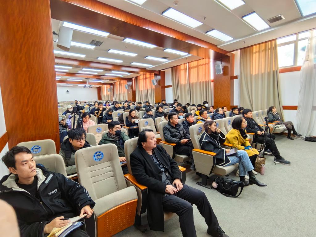 讲座伊始,雕塑院院长曾维林作为主持人隆重介绍了主讲人,并对李教授的到来进行了热烈的欢迎。讲座中,李教授通过自己的具体课题案例向大家阐述了国家社科课题及教育部课题的申报各个环节。并详细的对比分析国家社科课题与教育部课题的本质区别,向大家传授不同类型课题申报过程中的宝贵经验。