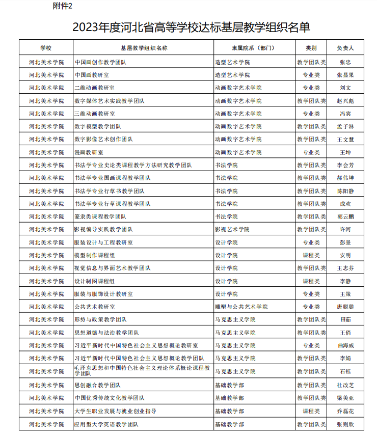 近日,河北省教育厅下发《关于公布2023年度河北省高等学校优秀和达标基层教学组织名单的通知》,公布了2023年度河北省高等学校优秀和达标基层教学组织名单,我校新增2个河北省优秀基层教学组织,29个河北省达标基层教学组织。至此,我校共有4个河北省优秀基层教学组织,59个河北省达标基层教学组织。