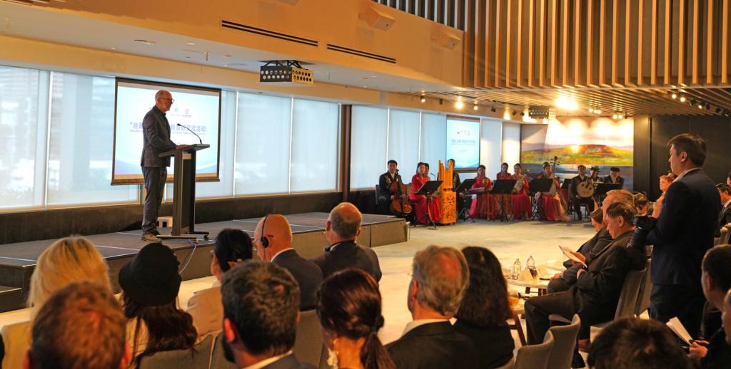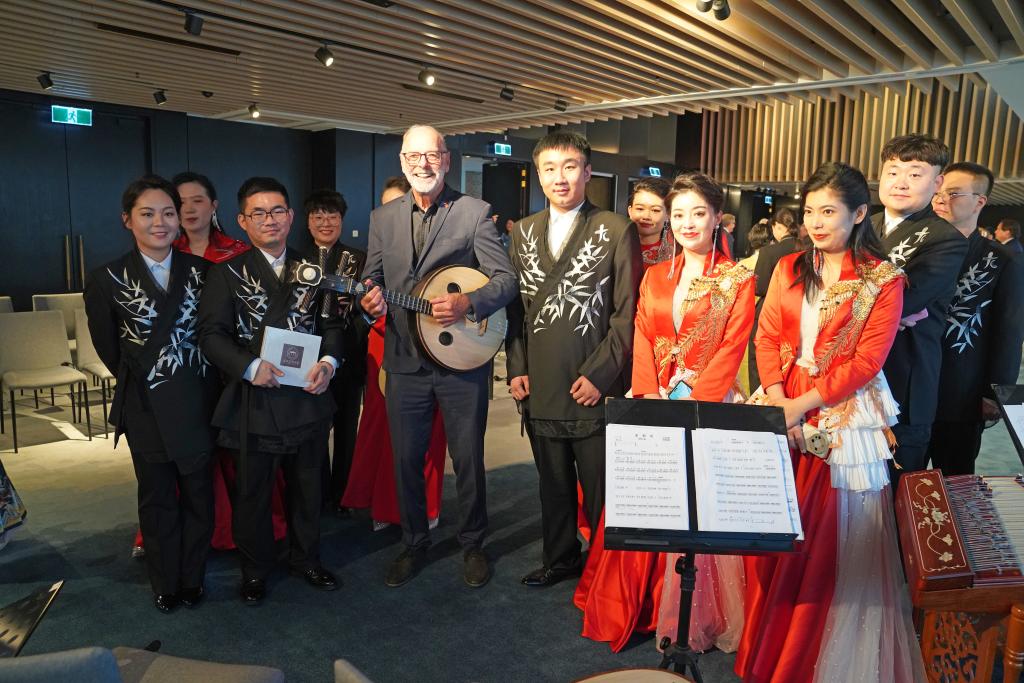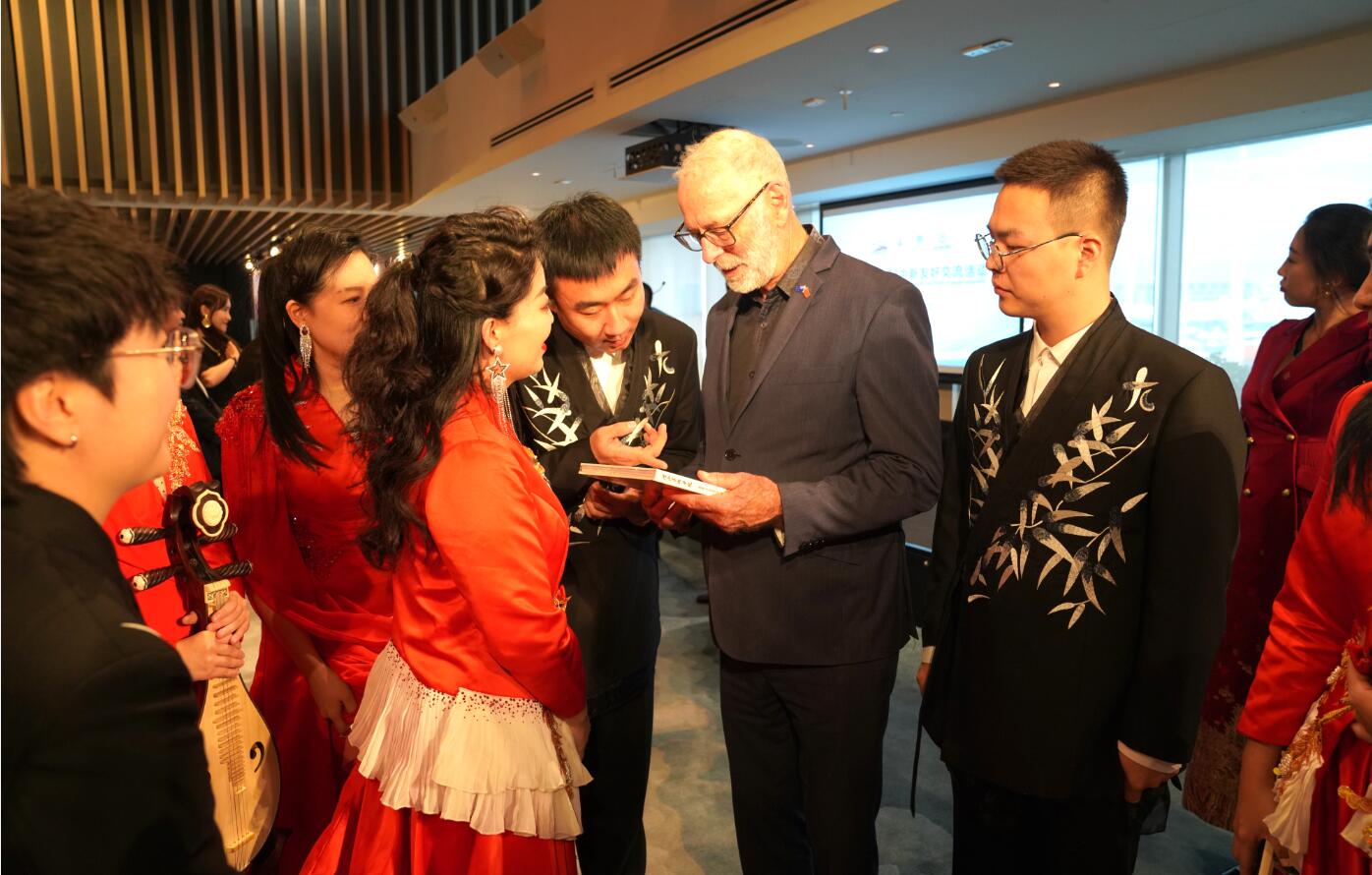 在“一带一路”倡议提出十周年之际,《敦煌》与《茉莉花》两首作品以丝绸之路的历史背景为素材,旨在坚持以和平发展的理念,以传统历史为根基,共同打造文化包容的利益共同体、命运共同体以及责任共同体。演出临近尾声,一首《友谊地久天长》响彻现场,象征着中新建交半个多世纪以来两国人民的友谊经久不衰,也让人们更加坚信,只要两国人民携手共进,友谊必将历久弥新。