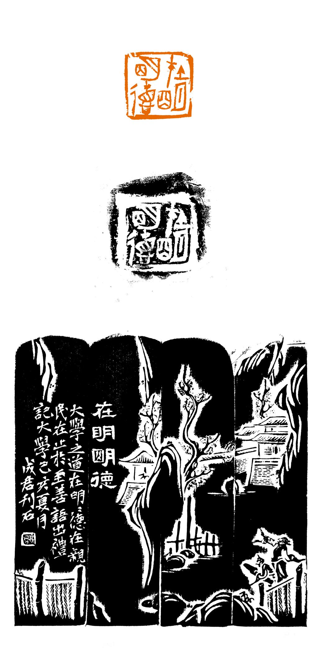 镌刻有章,法在自心。在章法上,成老师借鉴国画构图和平面构成的规律,注重大开大合的视觉冲击力和整体的变化统一;在字法上,他推崇“印从书出”,一方面大量临摹研究与古印同时期的金文、陶文,并加以“印化”,另一方面,在篆刻创作中强调文字书写的笔意;在刀法上,他尝试用薄刃劈削法,使线条呈现立体感,更具丰富的视觉变化。