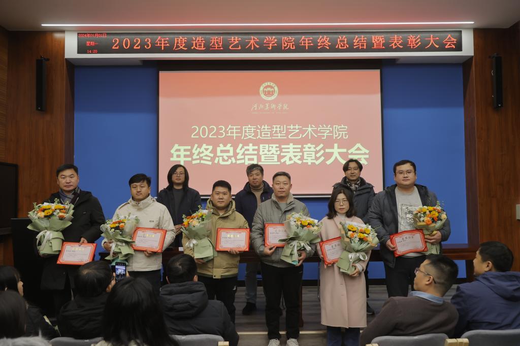 副院长张忠宣读了学院关于表彰杜建国等教师的决定。经学院领导班子研究决定,给予杜建国优秀教研室主任称号;给予孟祥振、王佳美、秦立强、杜琛、白玉超、李智咏、李亚培、张显果、杜建国、孔祥凤、郭跃峰、李亚宾12人2023年度造型艺术学院师德标兵荣誉称号。给予李亚宾、许梦雪、孟祥振、杜建国、刘庆军、张显果、孙庚、李亚培、郭建坤、吕孜晶、付竞萱、杜琛、史新月、鲁斌、 邵雅楠、吕家成、韩典亮、王晓蕾、廖承后、孙嘉阳、韩雨、丁汀、李玥璇、任会芹、秦欢、蒲中璟、张骞27人2023年度造型艺术学院优秀工作者荣誉称号;并为获奖教师颁发了荣誉证书。受表彰教师代表王晓蕾老师发言。