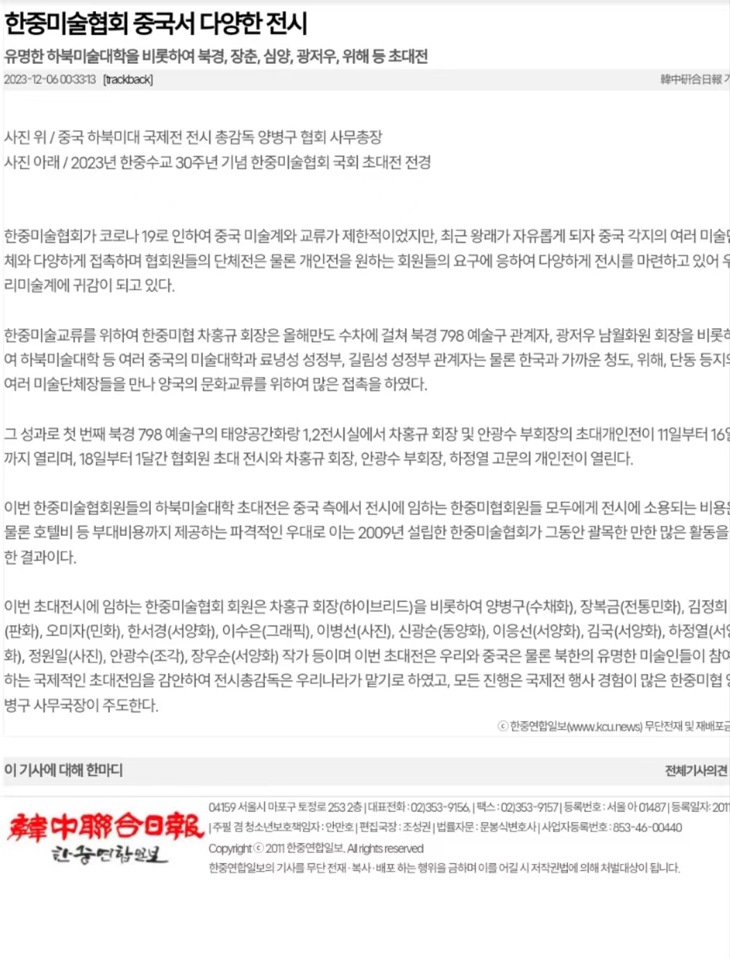 2.뉴스(c1news)한중미술협회, 중국 하북미술대학 초대 제7회 한중교류전 성황리 개최중韩中美术协会国产精品爽爽久久久久久竹菊-精品少妇人妻一区二区-国产乱人妻精品一区二区-香蕉精品偷在线观看-少妇一夜三次一区二区邀请展第七届韩中艺术交流展展示中)