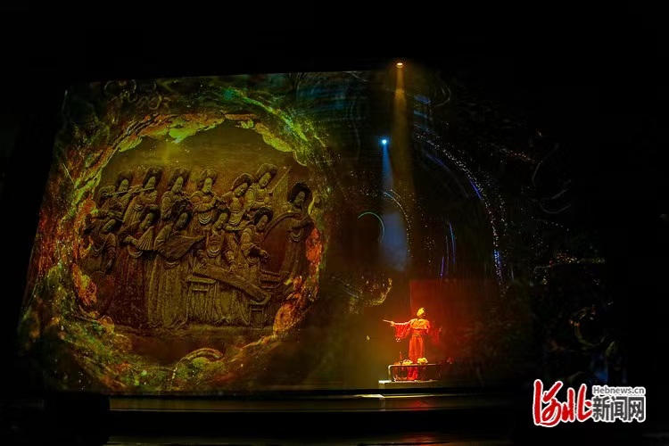 演出以多媒体创意秀的形式在舞台上复刻国宝级文物《白石彩绘散乐浮雕》,国乐艺术家方锦龙将艺术团教师演绎的浮雕“女子十二乐坊”带到现场,再次奏响1100年前的“悠扬散乐”。同时现场通过光电技术、覆盖式纱幕、机械化舞台等多元技术加持形成多种变换组合,打造沉浸式场域,全面立体诠释国宝文物的古韵新声,多元融合凸显国乐年轻活力,多样变化彰显华夏音乐智慧,成为整场演出最大亮点和爆款节目。