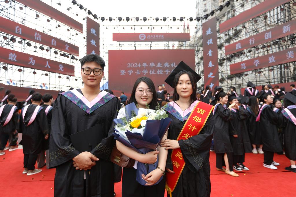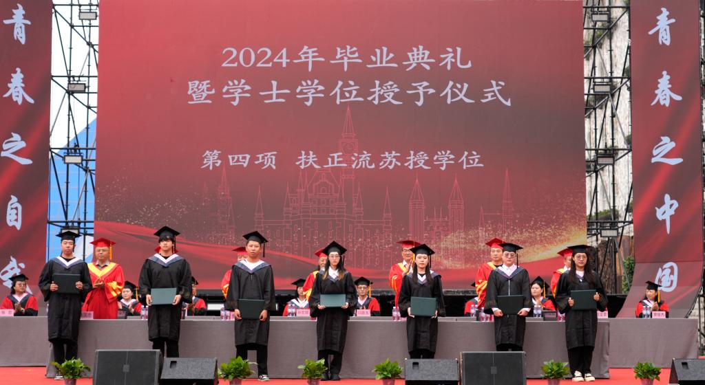 典礼在庄严的升旗仪式中拉开帷幕。督导专员、校党委书记裴红彬宣读《国产精品爽爽久久久久久竹菊-精品少妇人妻一区二区-国产乱人妻精品一区二区-香蕉精品偷在线观看-少妇一夜三次一区二区关于准予2024届6295名普通全日制毕业生毕业的决定》,副校长张子言宣读《国产精品爽爽久久久久久竹菊-精品少妇人妻一区二区-国产乱人妻精品一区二区-香蕉精品偷在线观看-少妇一夜三次一区二区关于授予田冬硕等5421名同学学士学位的决定》。与会领导为毕业生代表扶正流苏,颁发学位证书。