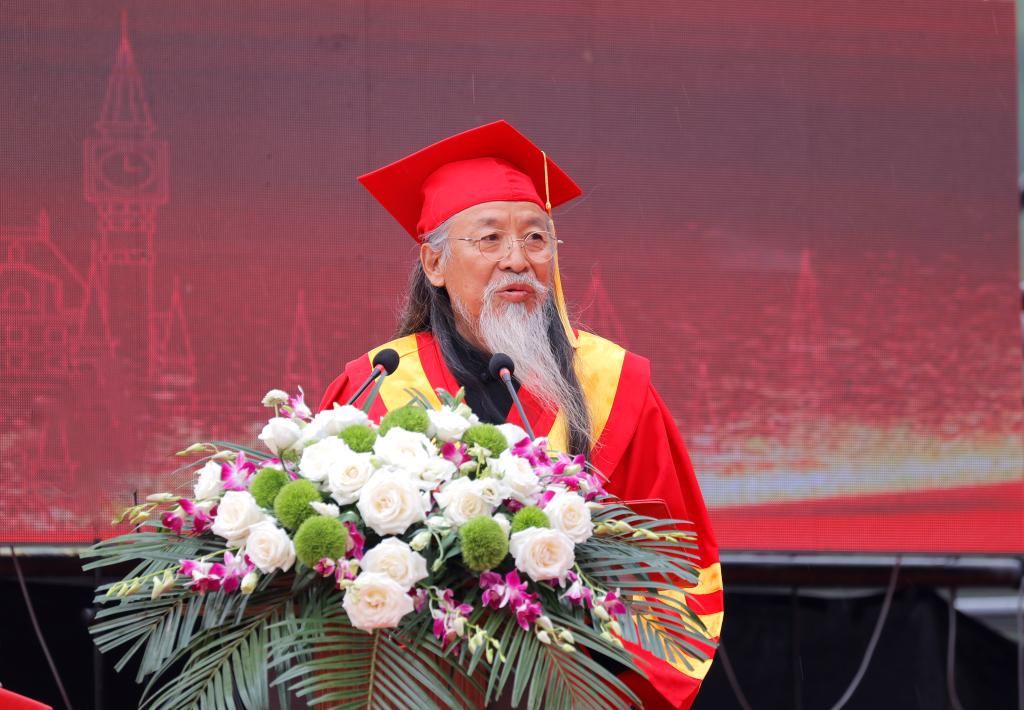 教师代表影视艺术学院米静霞、辅导员代表书法学院王艳飞、宿管员张会芳、餐饮部胡田亿、安全工作处李成学、保洁员刘建红分别发表临别赠言,表达了对毕业生的牵挂与不舍,并送上了美好的祝福。毕业生代表陆航、徐煜莹、徐睿婕向学校领导的关心关爱和老师的悉心教导表示感谢,表示定会牢记学校的嘱托,学知识、长本领、修品德,争做不负人民、不负社会的栋梁之材。校友代表李晗鼓励毕业生们要坚定梦想,勇敢前行。