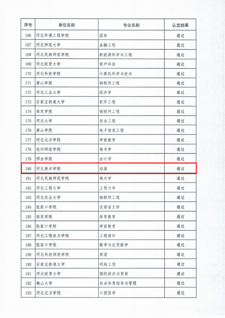 近日,河北省教育厅印发《河北省教育厅关于公布第二批省级一流本科专业验收认定结果的通知》(冀教高函〔2024〕27号),公布了2020年度立项建设的292个省级一流本科专业验收认定结果,我校提交验收的动画、雕塑、广播电视编导专业均顺利通过验收。