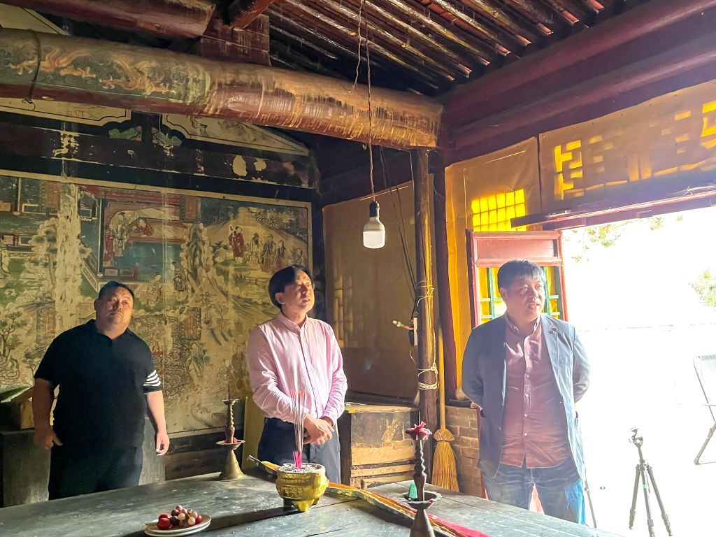 在本次调研中,张建敏一行详细了解了壁画采集组的工作流程和进展情况。团队自项目启动以来,已成功完成暖泉、柏树、北水泉、宋家庄四个乡镇近百处文化遗存的数据采集工作,涉及蔚县多个历史文化名村和文化遗址,采集内容涵盖民间壁画、碑刻及档案、民俗影像等多种类型。通过实地了解项目难点与成果,学校可以更精准地部署后续的支持措施,推动项目在保护传统文化、提升民众文化认知度、助力地方文化产业等方面取得实质性进展。