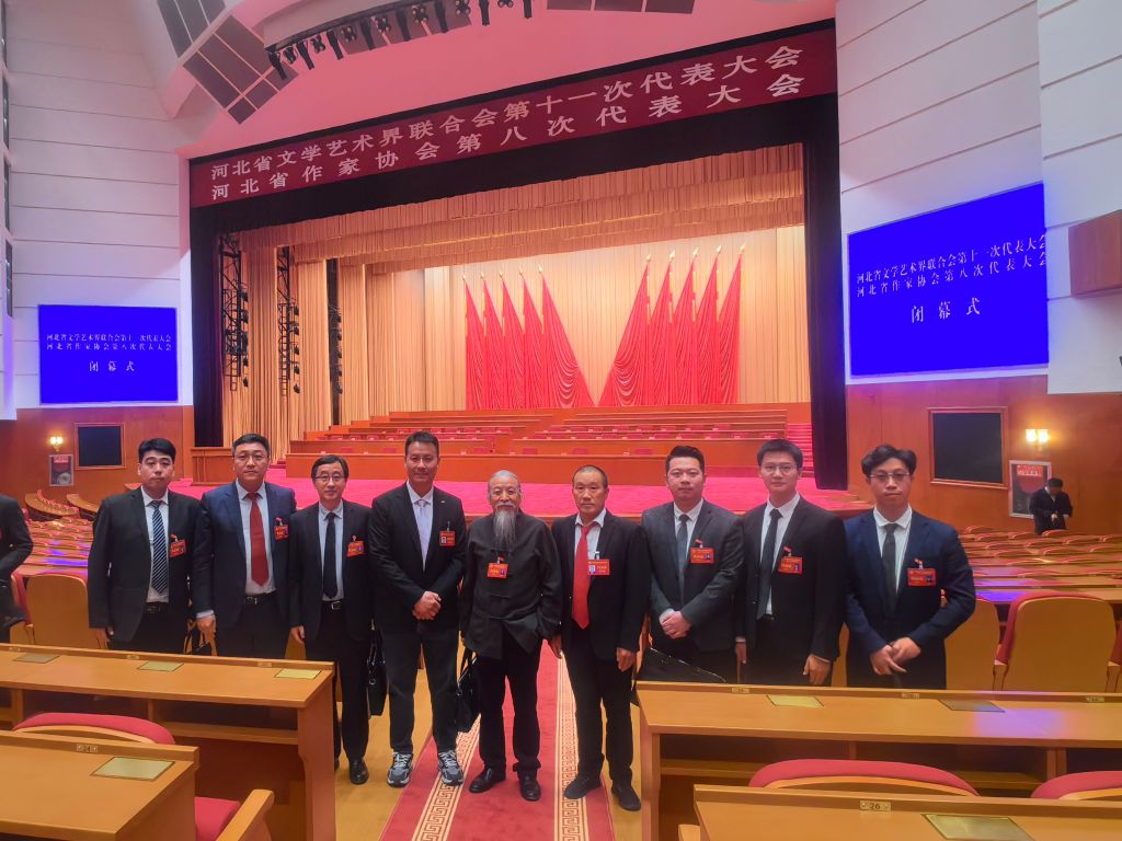 我校校长甄忠义、优秀校友崔景哲作为河北省美术家协会代表团成员,我校教授、作家白庆国、刘荣书作为河北省作家协会代表团成员,书法学院副院长郭云鹏、教师成欢、胡建刚作为河北省书法家协会代表团成员,书法学院教师成君作为河北省文艺志愿者协会代表团成员,参加了此次会议。