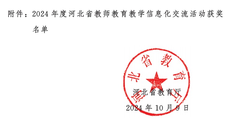 近日,河北省教育厅公布2024年度河北省教师教育教学信息化交流活动评选结果,我校共15项作品获奖。其中,一等奖1项、二等奖3项、三等奖11项,张曼青、林凡青、张元团队参赛作品被推荐参加国赛。