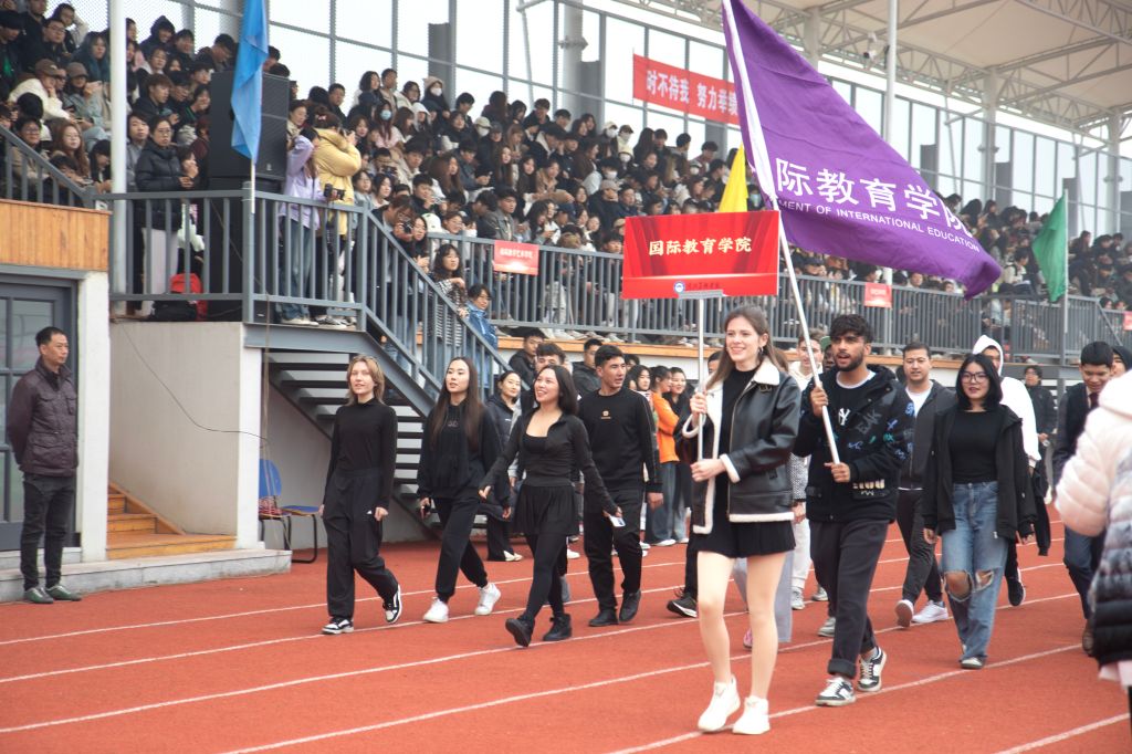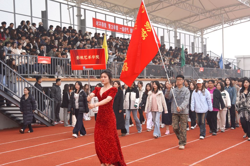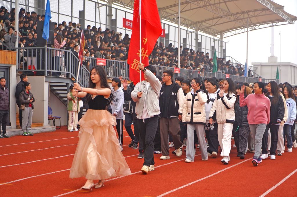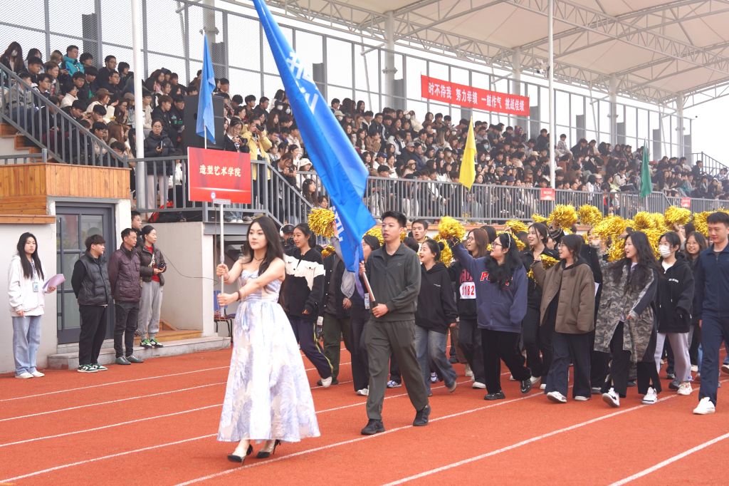 国旗护卫队、旗林队率先入场,旗帜飘扬,气势恢宏。紧随其后的是裁判员方队,步伐稳健,精神抖擞。各二级学院方队最后入场,他们昂首挺胸,喊着响亮的口号,迈着刚劲有力的步伐,展现出河美学子的青春风采。