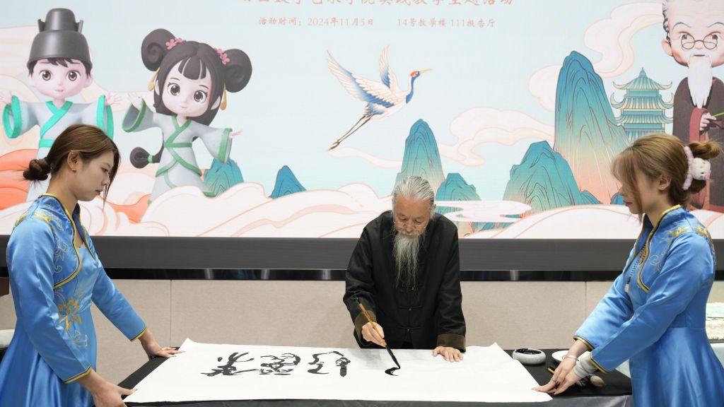 张子言致辞。他指出,这部作品不仅彰显了艺术与文化的深厚魅力,更体现了数智技术赋能教学的潜力。他强调,在当今快速发展的数字时代,如何更好地将传统文化与现代技术相结合,是每一位教育工作者都需要深入思考的问题,而《美丽的传承》正是这一思考的有益尝试和成功实践。学校将继续支持并鼓励师生们在教学实践中的创新探索,为他们提供更多的资源和平台。