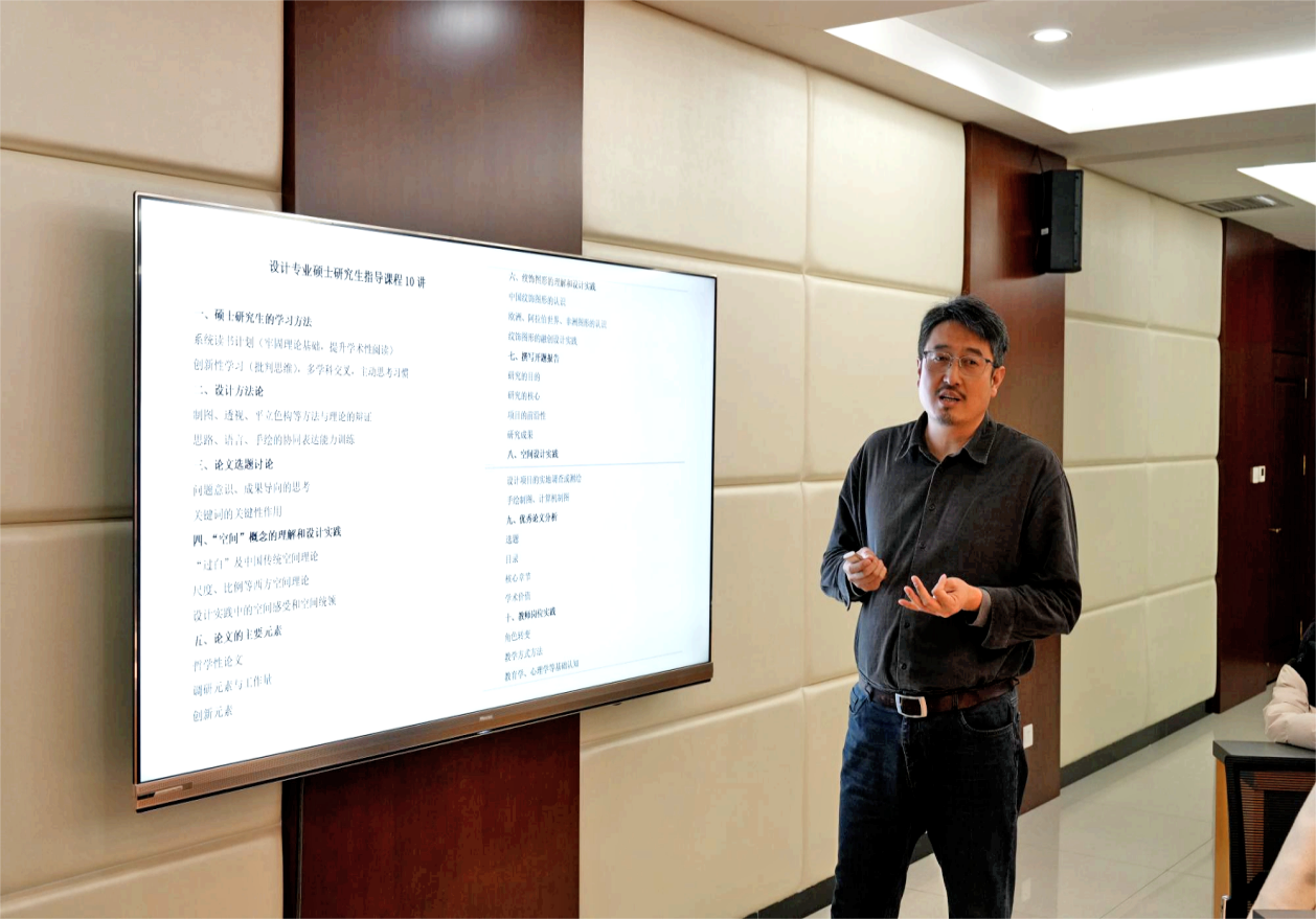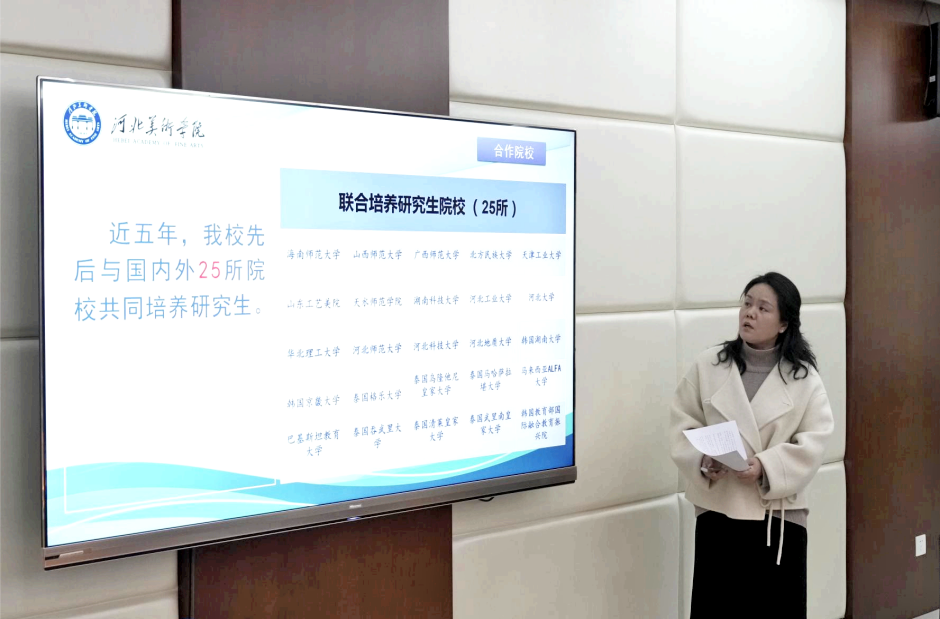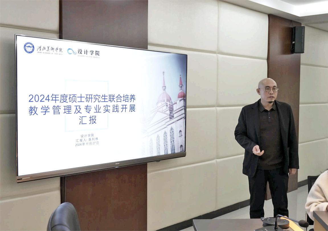 设计学院作为研究生联合培养的主要二级单位,副院长陈利伟向参会人员介绍在研究生导师培养、教学、实践、科研等方面做出的积极努力。依据研究生培养单位的要求制定教学管理和实践行动计划,按照“项目结合、以赛促学、以赛促检”的培养思路组织学生参加各类比赛;根据学生专业特长进行毕业设计与毕业论文指导;并带领学生进行课题研究,增强学术研究能力等。
