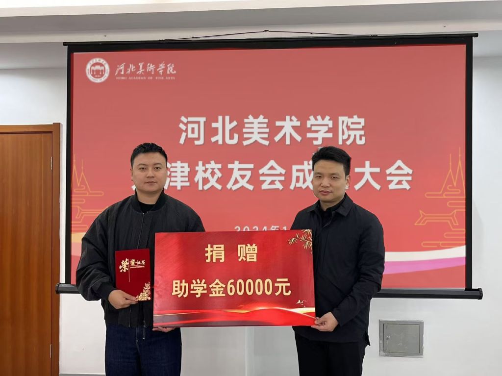 张戌峰代表天津校友会向母校捐赠物资和助学金