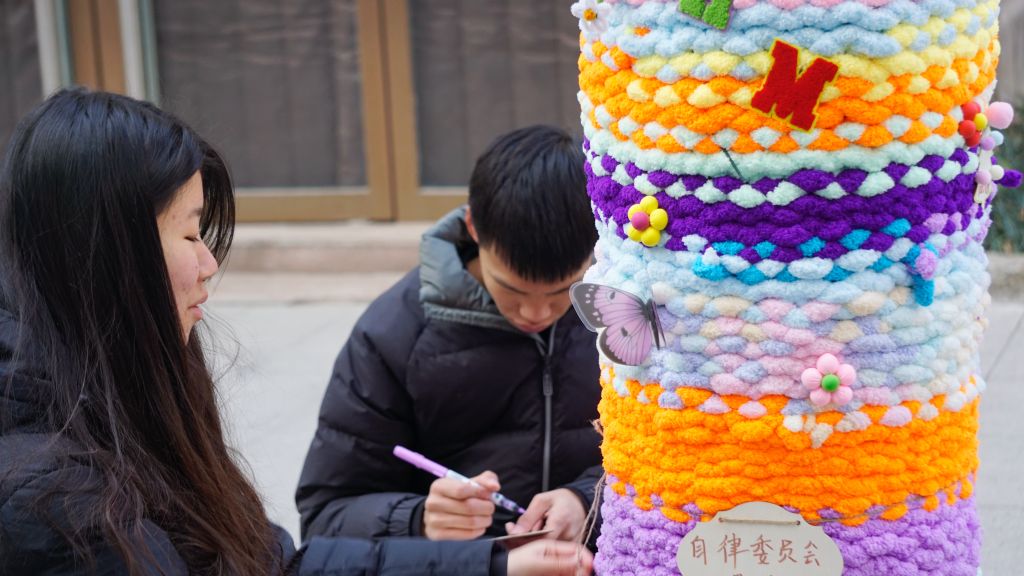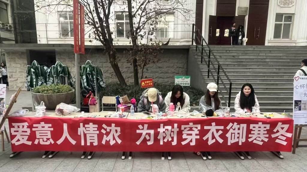 活动中,每一针每一线都蕴含着师生的艺术匠心,每一个挂饰都点缀着冬日的绮梦。树木在师生的巧手下焕然新生,不仅增添了校园的暖意,也传递了环保的理念。学生自发成立护绿小队,积极宣传环保知识,形成了良好的环保氛围。