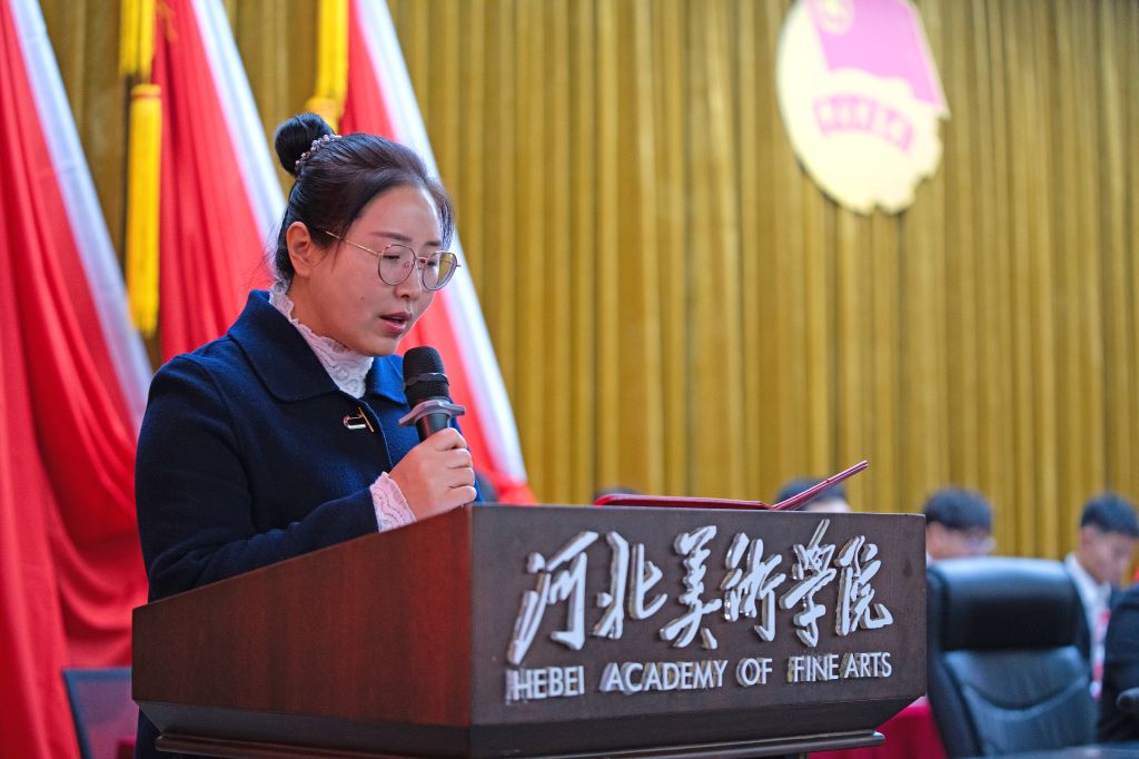 共青团石家庄市委副书记王丽致辞,王丽书记代表团市委向大会的召开表示祝贺,并在讲话中充分肯定了我校学生会组织在服务学生成长成才方面所做出的努力,并鼓励我校学生会组织以本次学代会为契机,持续深化作风建设、全面推进从严治会,积极打造富有理想、关心同学、清新阳光的组织形象,引领身边同学为建设现代化、国际化美丽省会城市贡献一份力量。