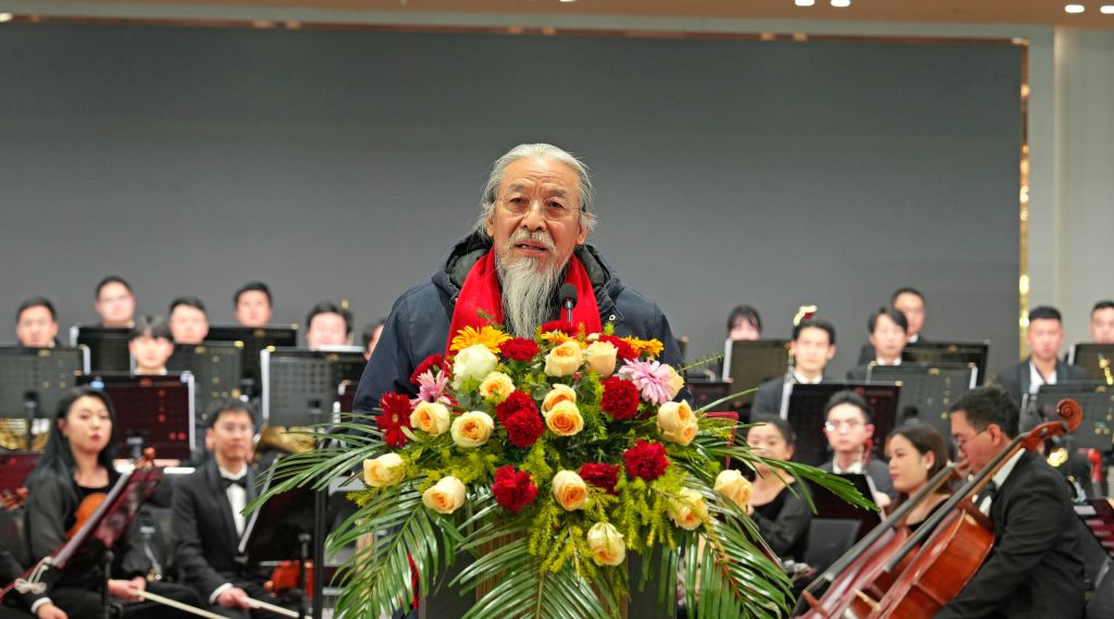 音乐会伊始,学校举办者、校长甄忠义发表致辞,向在座的每一位观众致以最真挚的祝福,期望大家在新的一年中蓬勃向上,成就非凡。他回顾了过去一年学校在人才培养、科研创作、国际交流等领域取得的辉煌成就,对全体教职工的辛勤付出表达了深深的谢意。甄校长的讲话中充满了对学校2025的各项工作的期许与信心。