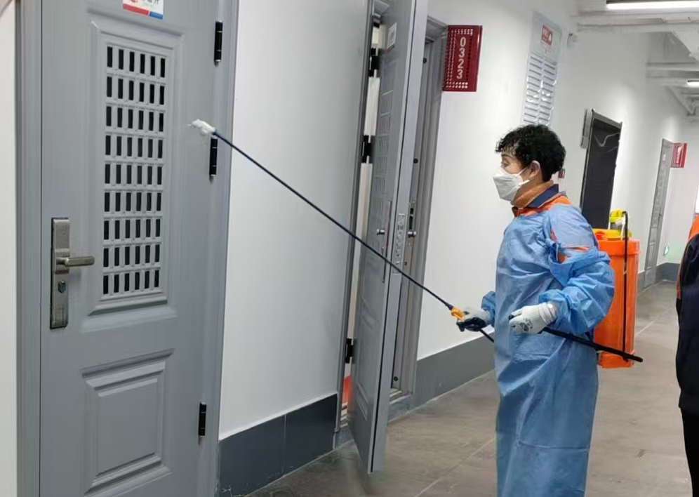 后勤管理与服务处调配专业消毒人员,组成多个消毒小组,对校园内的教学楼、图书馆、食堂、宿舍等重点区域进行了全方位、无死角的消毒作业。