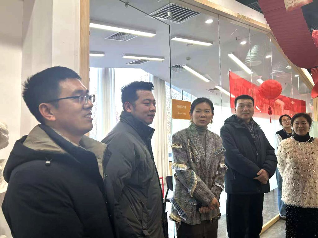 在启成美术培训学校,张子言一行参观了美呈艺术空间(蜂巢店)校区的教学设施,详细了解了学校的教学环境、课程设置以及师资力量,并与启成美术培训学校的管理层进行深入交流。双方围绕人才培养、实习实训、就业推荐等多方面进行探讨,最终达成多项合作意向。