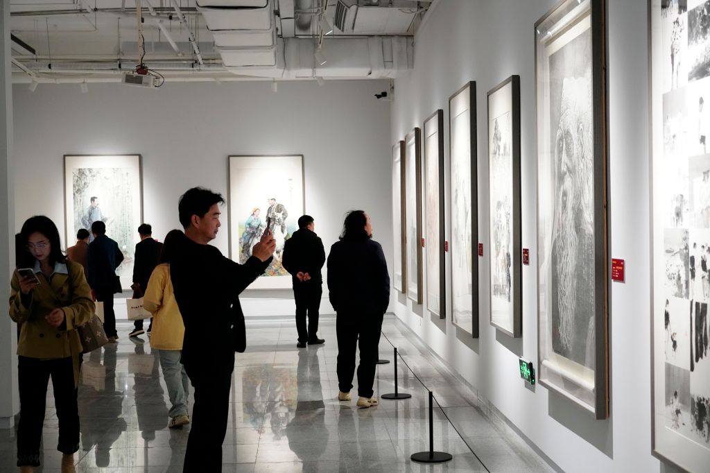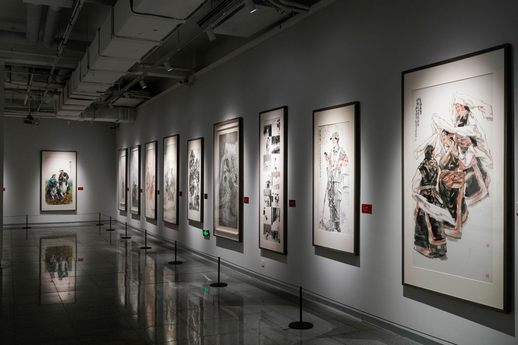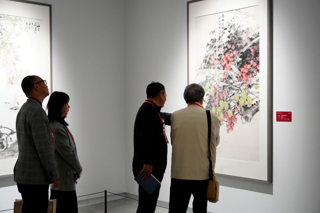 此次展览立意深远、格调高雅,现场人潮涌动气氛热烈。展览分为“山河入画”“锦羽繁花”“时代映象”“承古出新”四个单元,共展出侯德昌、韩美林、金鸿钧、张立辰、马振声、郭怡孮、杨力舟、李燕、尼玛泽仁、龙瑞、程大利、苏士澍、王明明、范迪安、孙晓云、白云乡、刘金凯、祁海峰等一众名家的新作与力作142件。山河入画,既描绘天地壮阔之姿,又渗透着人与自然的和谐美学。锦羽繁花,工笔精微,写意洒脱,承载着生命的诗意,诉说着人间的情致。时代映像,形神兼备,映照风华,以市井百态、时代新貌映照社会变迁,见证人民精神。承古出新,既见笔墨风骨,又蕴书者情怀。书法艺术在传承中推陈出新,于现代语境中焕发新生。