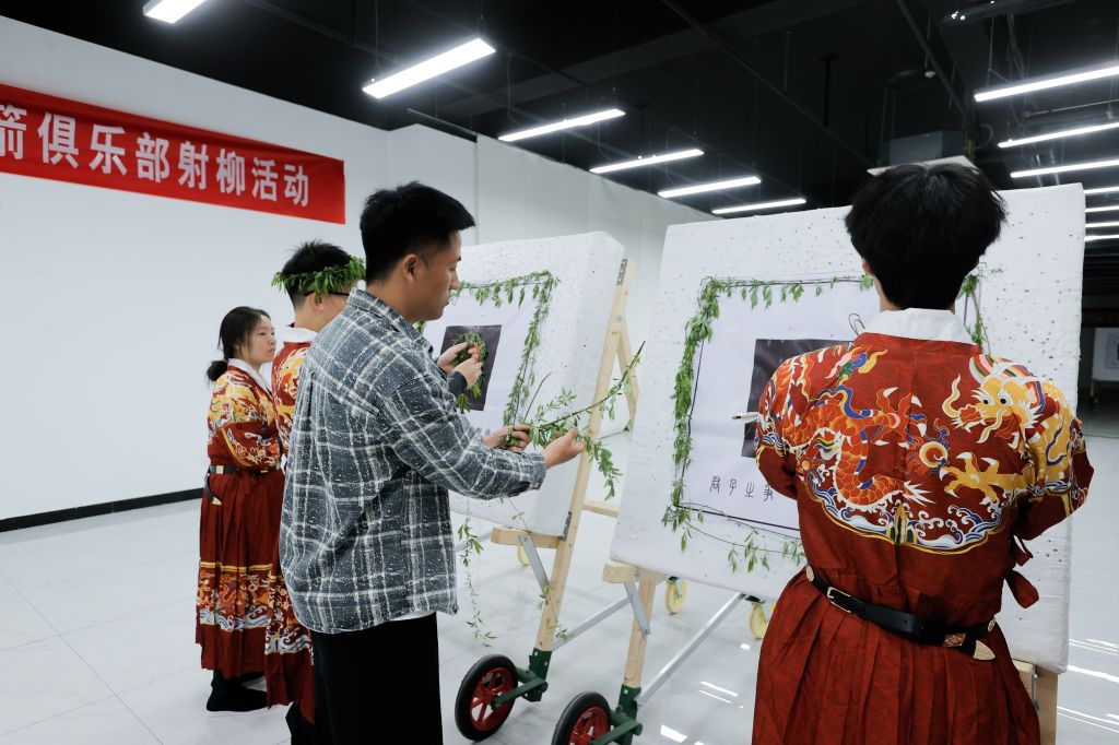 从折柳、编柳到装饰箭靶,学生们在劳作中理解“清明柳”承载的生命力;击鼓礼射,则让礼仪教化从书本走向实践。此次活动让学生们对古代射柳活动有了直观的认识,也体会到了古人在传承文化过程中的智慧和努力,同时让古韵在青春的校园里绽放出更加绚丽的光彩。未来,我校将继续秉持“以体育人、以文化人、铸魂健体”的理念,搭建更多传承创新平台,构建传统体育文化传承新生态,持续推动校园体育文化活动的创新性发展。