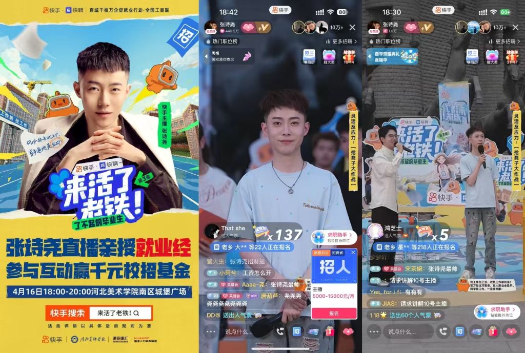 活动现场,张诗尧以其标志性的“青海摇”舞蹈开场,迅速点燃直播间氛围。他结合自身在短视频领域的成功经验,鼓励艺术类学生发挥创意优势,积极拥抱数字经济新业态。“直播不仅能带来流量,更能创造就业机会,希望今天的岗位能帮助大家在家乡找到理想工作。”张诗尧在直播中表示。