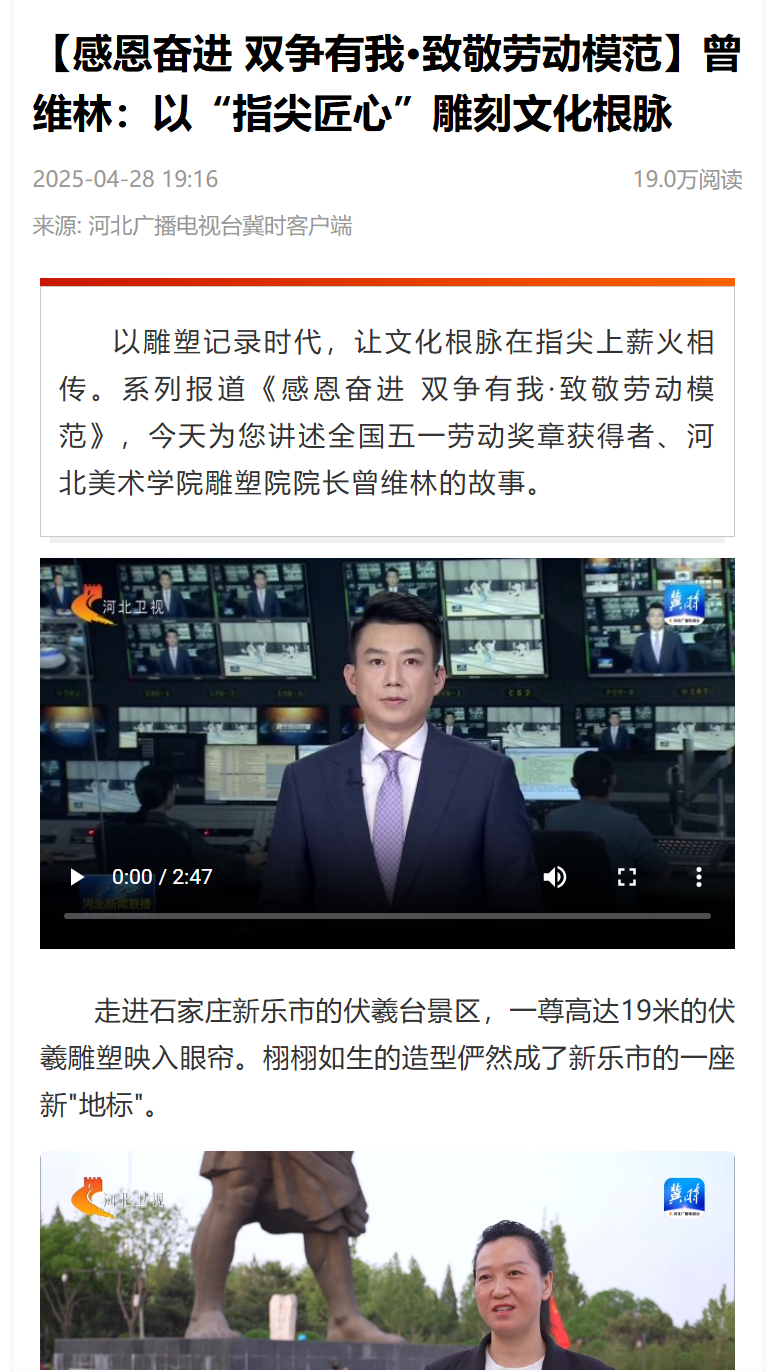 2025年4月28日,中共中央委员会、中华人民共和国国务院对全国劳动模范和先进工作者进行了表彰,我校雕塑院院长曾维林荣获“全国劳动模范”荣誉称号。