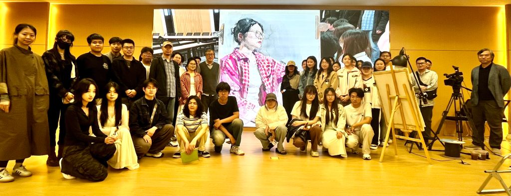 在讲座的互动环节,李晓林解答了师生的提问。他指出,照片创作可行,但不能画成照片的样子,要进行主观处理。他以西方的照相写实主义画家克洛斯、李希特等为例,指出他们对照片的运用有各自的特点和探索,也为大家的绘画创作提供了思路。面对当下艺术环境的多元与困惑,李晓林以“走小路”的比喻,鼓励学生找到自己的艺术路径:“现在的信息太多,反而容易迷失。但无论时代如何变化,艺术的本质是对人的关注、对生活的热爱。”