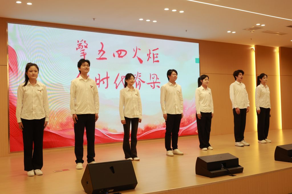诗歌朗诵《擎五四火炬,在时代燃烧》以铿锵有力的语言展现了百年青春与时代的对话,引发了在场师生的强烈共鸣。