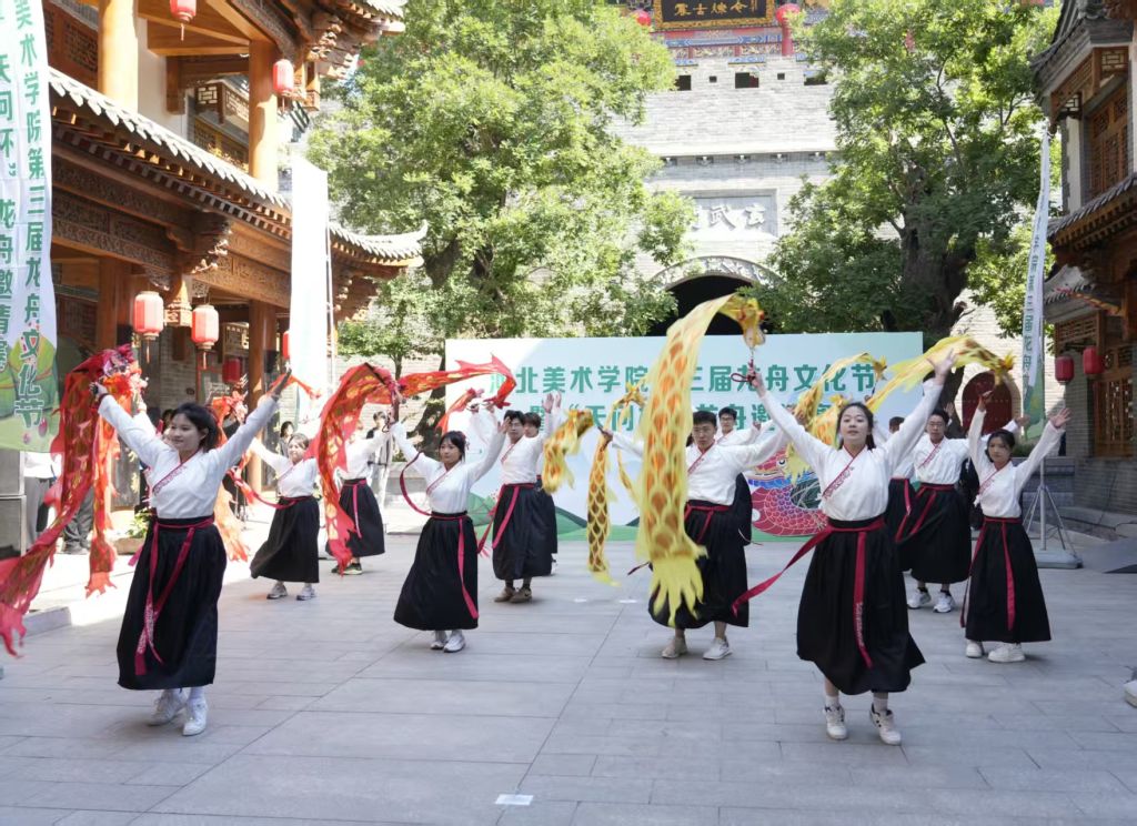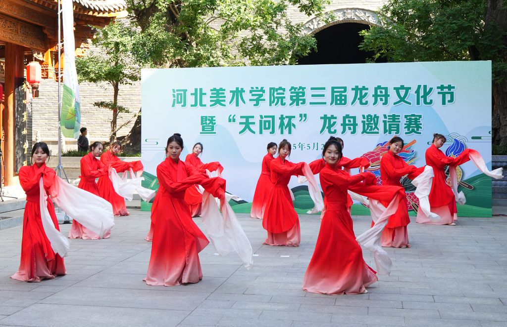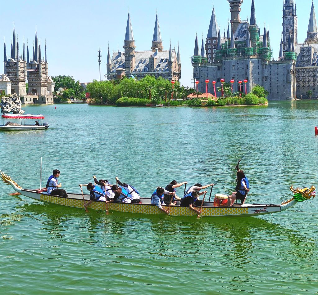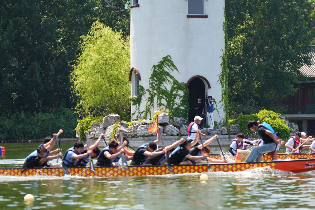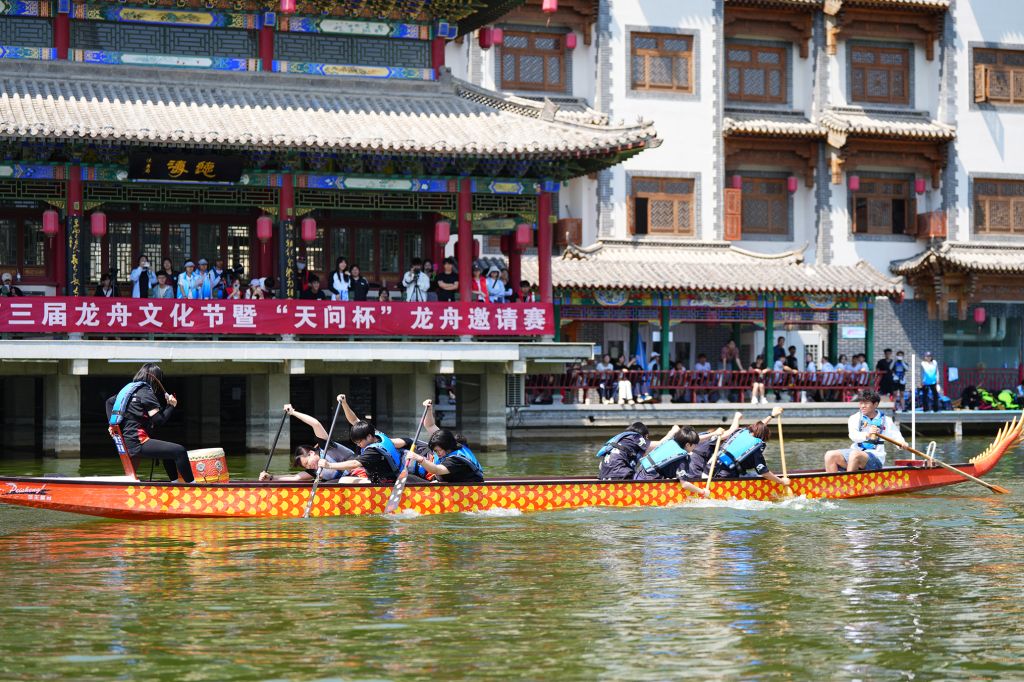 雄狮欢腾,金龙舞动。各学院代表队精神抖擞,水上表演精彩纷呈,现场鼓乐齐鸣,营造出热烈欢快的氛围。点睛仪式后、龙舟比赛正式开始。
