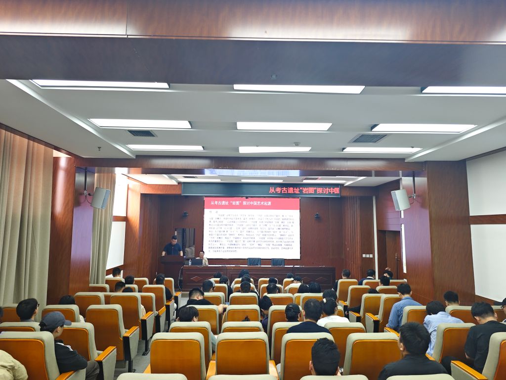 讲座中,李倍雷将目光锁定在中国北方重要的考古遗址——柿子滩遗址。他指出,遗址中发现的距今约一万年的“岩图”,是华夏先民早期审美意识的物质见证,承载着人类艺术萌芽阶段的文明密码。随后,他从考古学与艺术学相结合的独特视角,层层递进,抽丝剥茧,阐述“岩图”如何成为解读中国艺术源头的关键钥匙,以及其在历史发展进程中对中华美学基因产生的深远影响。他深厚的学术学养与生动形象的诠释,让晦涩的学术内容变得通俗易懂,现场师生沉浸其中,不时点头赞同,积极与其互动交流。