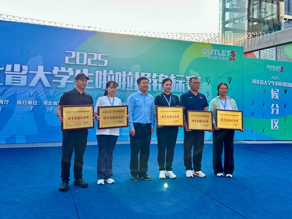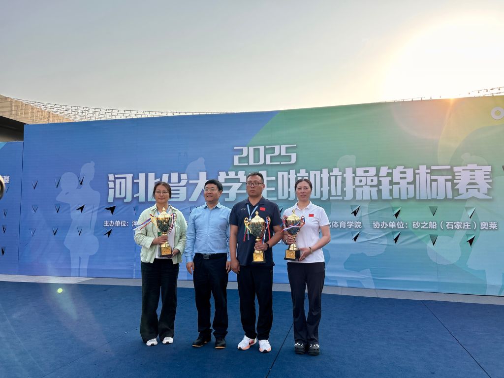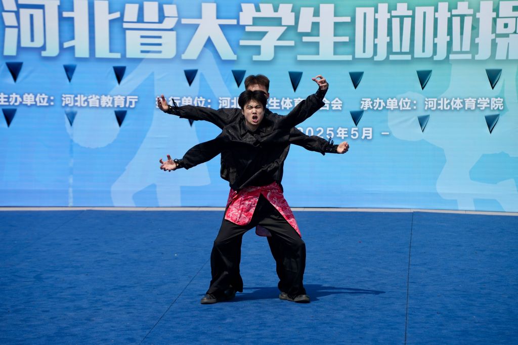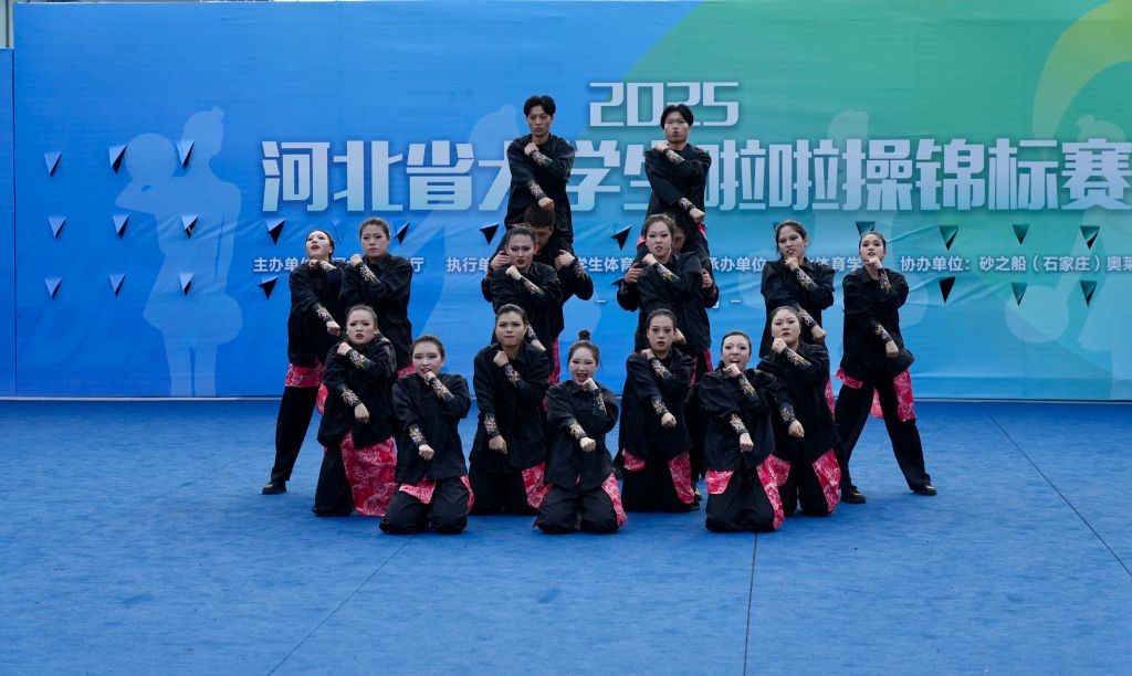 此次比赛吸引了来自河北师范大学、河北大学、华北理工大学、河北经贸大学等51所高校的1000余名运动员和教练员参加。我校王凡石、赵若男老师带领18名队员参加了集体街舞啦啦操、双人街舞啦啦操、集体花球啦啦操、双人花球啦啦操四个项目。队员们整齐划一的动作、创意的编排,为现场观众奉上了一场精彩的视觉盛宴,赢得阵阵掌声。