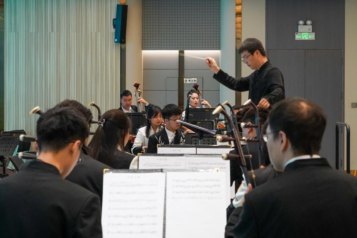 音乐会分上下半场进行。上半场,民族乐团在指挥曹家骏的引领下,以曲目《金蛇狂舞》开场,鼓乐铿锵有力、节奏明快,迅速调动了现场的气氛。随后,《红高粱》的旋律响起,带领听众感受高粱地里的生命律动。《太阳颂—挑山》与《印象国乐—大曲》,通过多种民族乐器的完美配合,营造出独特的音乐意境。最后一曲《花好月圆》奏响,为上半场演出画上句号。