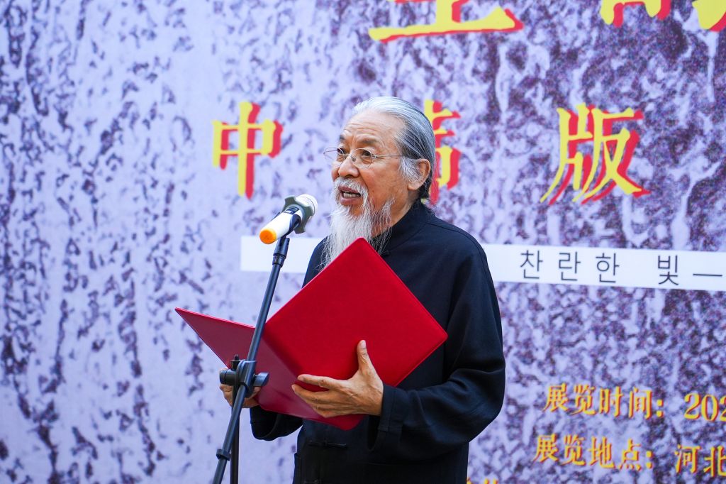 甄忠义在欢迎辞中表示,此次展览是一次艺术的盛会,更是一次文化的交流与对话。作品呈现了艺术家对生活的深刻感悟与对美的不懈追求,彰显了中韩两国版画艺术的魅力,为中韩搭建起艺术友谊之桥,促进了民间书画艺术的交流与发展。