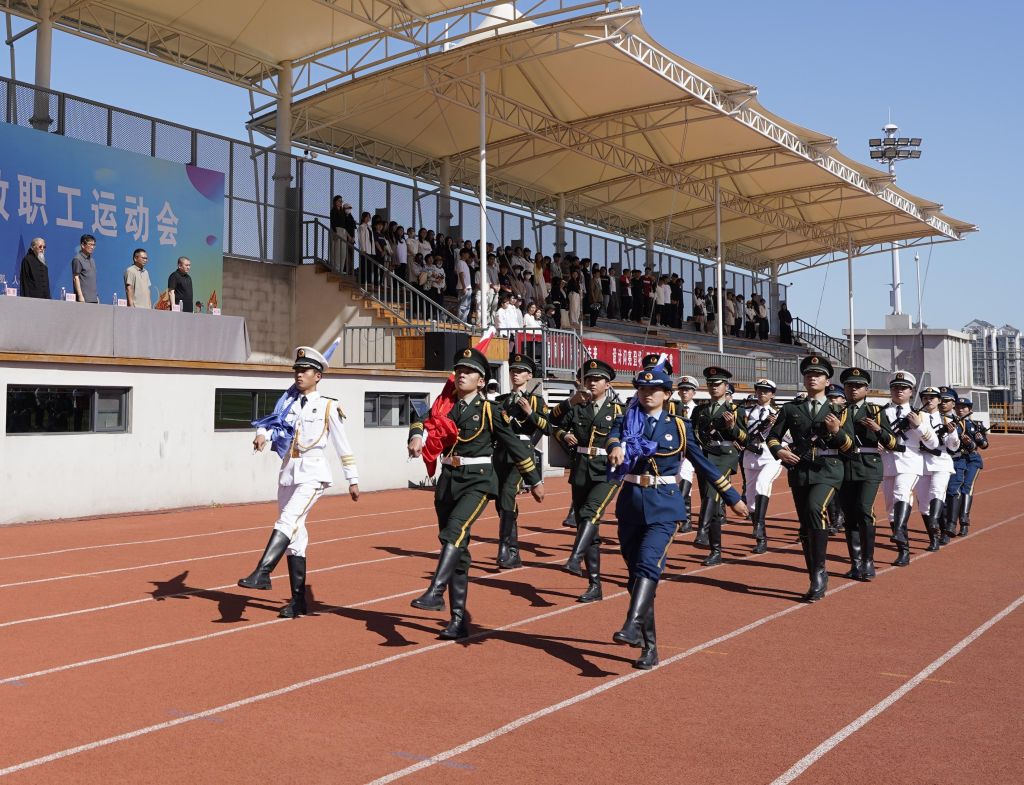 开幕式上,国旗护卫队、旗林队率先入场,旗帜飘扬,气势磅礴。紧随其后的是裁判员方队,步伐矫健,神采奕奕。各分工会方队最后入场,他们昂首阔步,喊着激昂的口号,迈着整齐有力的步伐,展现出教职工的蓬勃朝气与昂扬斗志。活力四射的啦啦操舞蹈,为赛事注入无限激情。