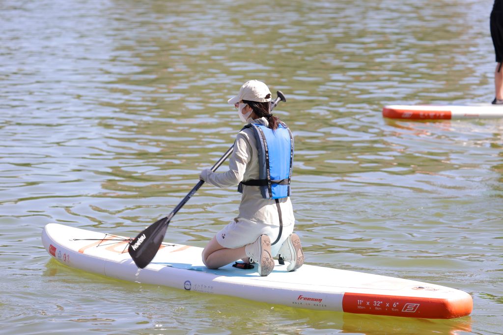 发令枪响,比赛正式开始。赛场上,热闹非凡,激情四溢。龙舟拔河项目中,教职工们齐心协力,紧握绳索,奋力拼搏;桨板救援与桨板绕标接力考验着教职工的水上技巧与团队协作能力,他们在水面上灵活操控桨板,快速穿梭,为观众带来一场场精彩的水上视觉盛宴;一分钟集体跳绳项目里,绳子飞快转动,教职工们默契配合,展现出灵动与活力;旱地龙舟、陆地冰壶、3V3篮球赛、拔河、健步走等多人竞技项目同样精彩纷呈,教职工们在赛场上挥洒汗水,尽情享受团队协作带来的快乐。