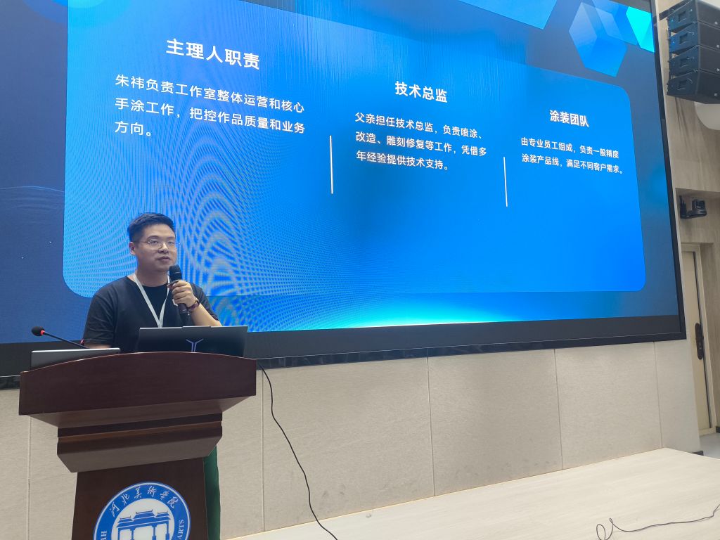 FLORIAN以游戏角色、场景潮玩系列为例,详细阐述了手办模型等衍生品在艺术创作中的关键阶段;朱祎分享了从兼职工作到主理工作室的创作心路,为学生带来实用指导;朱段旭辰将自身职业发展、参赛经历与原创产品制作经验,倾囊相授。现场师生踊跃提问,气氛热烈。
