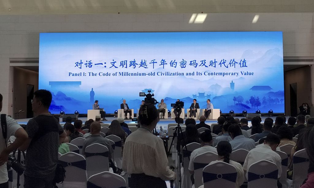 上午9时30分,随着开场舞蹈《甲骨“新”文》的灵动舞姿,活动正式开始。接下来,留学生们聆听了两场圆桌对话,观看了创意十足的主题展示。这些活动为留学生打开一扇理解人类文明共同价值的大门。