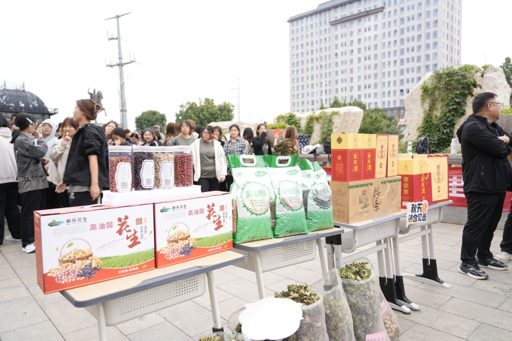 现场设成果展示体验区,分为展示区、品尝区,展出蔬果、花生、毛豆等劳动成果和手工制品、实训成果,师生沉浸式感受丰收喜悦。