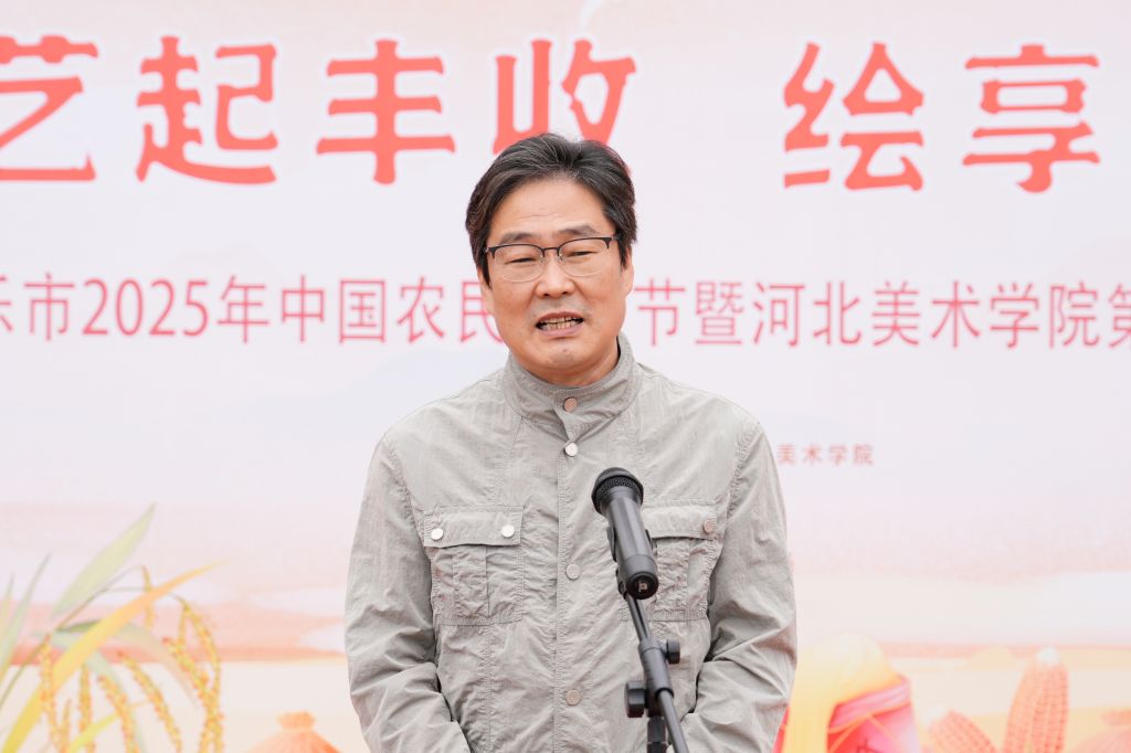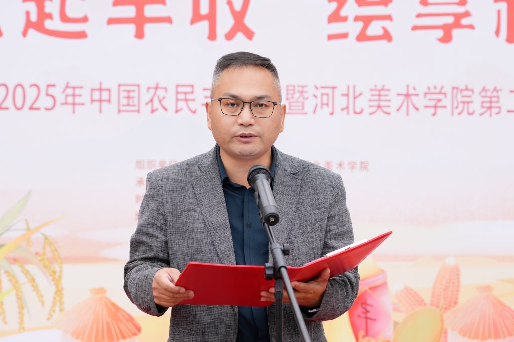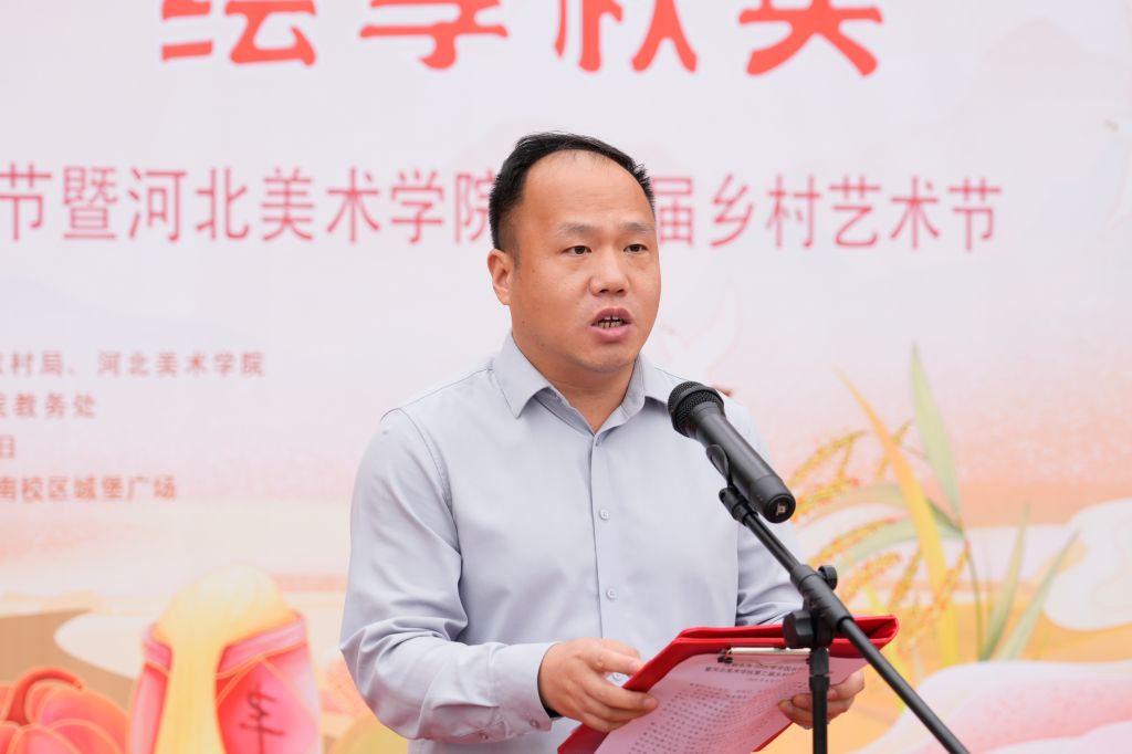 甄心恒致辞。他强调,学校历来重视劳动教育,积极开辟劳动教育基地,开发特色劳动课程,鼓励师生深入田间感悟农耕文化、激发创作灵感。未来将继续深化合作,为美丽乡村建设贡献河美力量。
