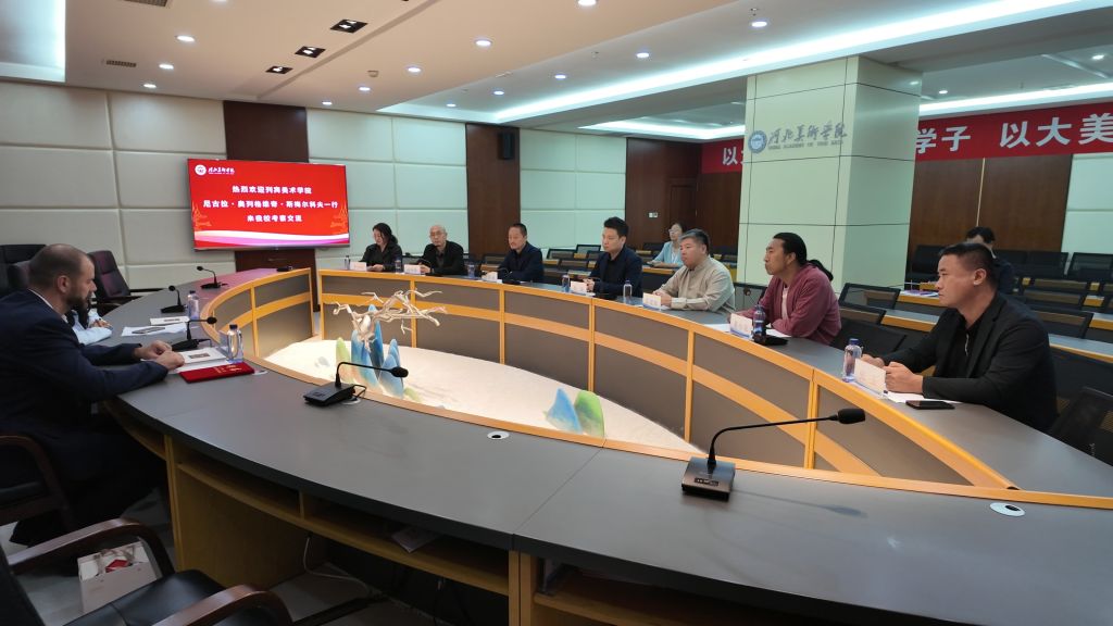 甄墨对尼古拉·奥列格维奇·斯梅尔科夫、李众志的来访表示欢迎,简要介绍了学校的发展历程与未来规划,表达了与列宾美术学院在留学生培养、硕士研究生联合培养、国际学术会议等方面的合作意愿,期待共同开创国际交流与联合办学的新篇章。