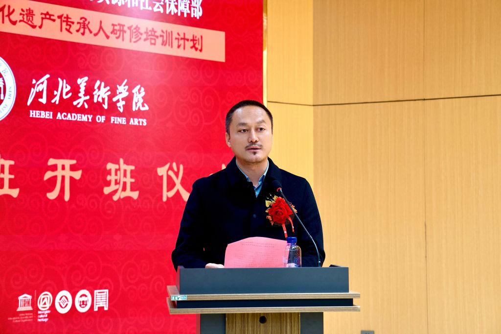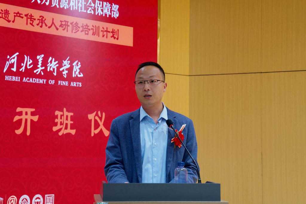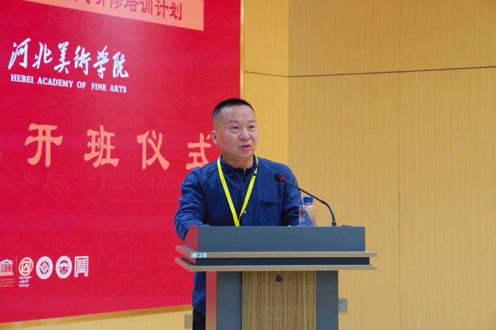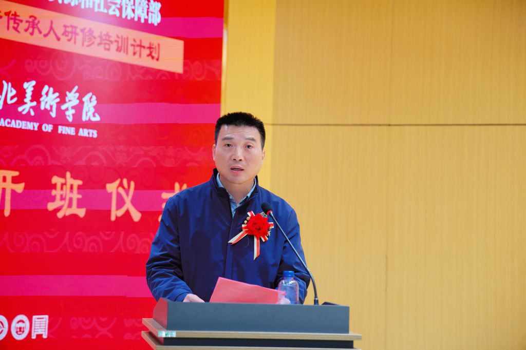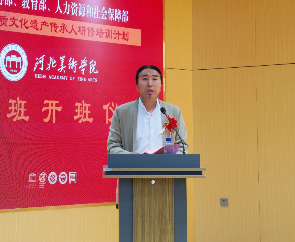 张子言在致辞中介绍了学校办学成果及2017年以来承办国家级非遗研培项目的成效,承诺学校将提供优质教学资源与学习环境,勉励学员守正创新,为非遗传承贡献力量。
