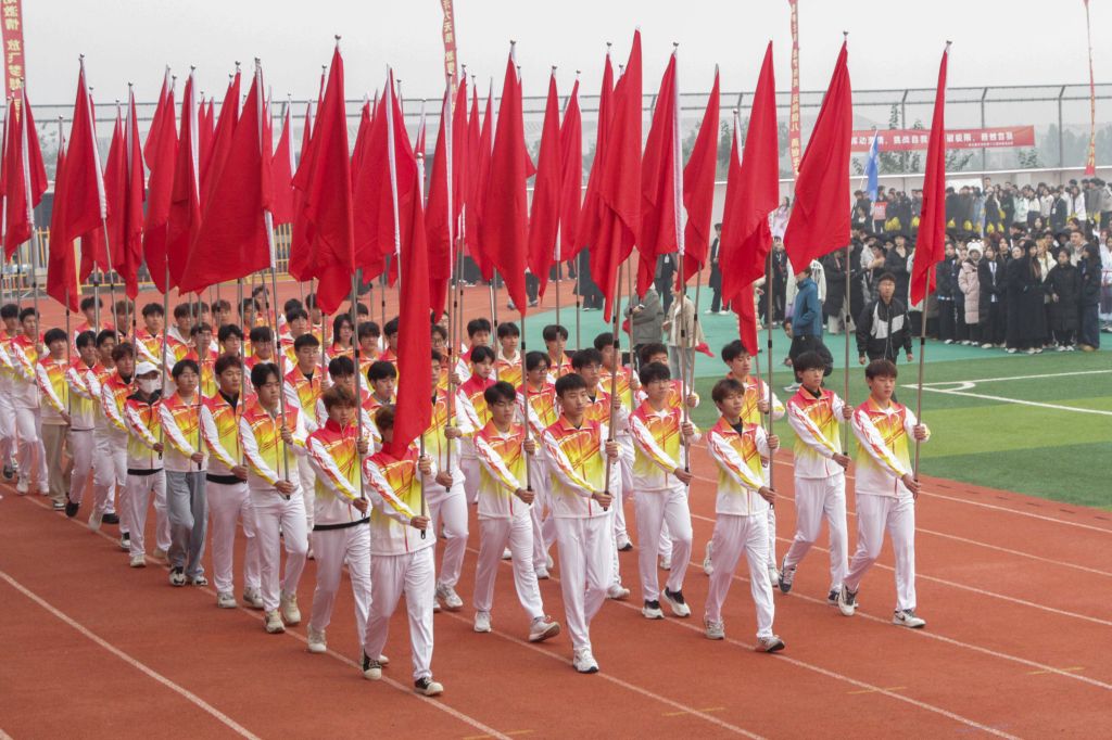 上午8时30分,国旗护卫队率先入场,他们迈着铿锵有力的步伐,护送着鲜艳的五星红旗走向主席台,彰显着全体师生对祖国的赤诚热爱。紧随其后的是旗林队,彩旗猎猎,迎风招展,为运动会增添了热烈的氛围。裁判员方队精神抖擞,整齐入场,他们将以公正严谨的态度为本次运动会保驾护航。最后,各学院运动员方队依次登场,他们或身着富有学院特色的服装,或手持精心制作的道具,通过独特的造型和精彩的表演,展现出各学院的专业风采和学子们的青春活力。