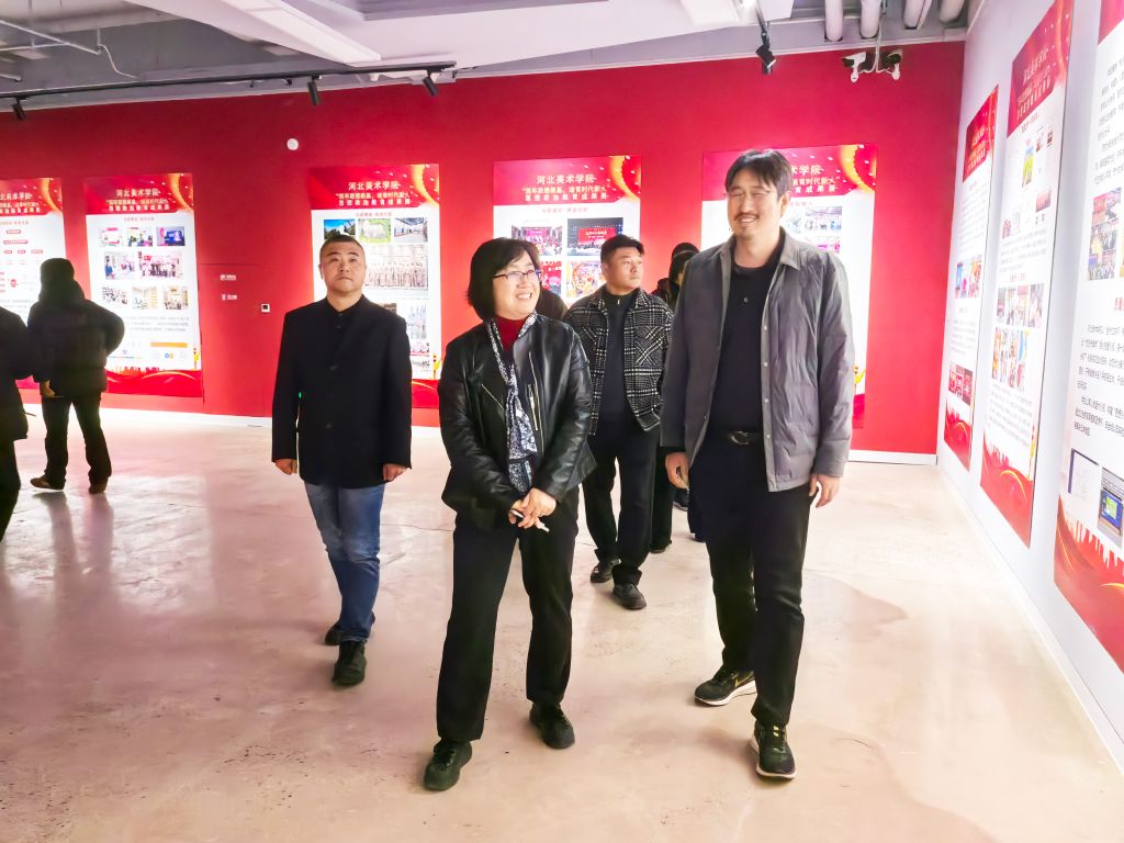 签约授牌仪式结束后,河北科技大学一行实地参观了我校“党旗飘飘 奋进美院”党建成果展及“首届青年雕塑作品展览”,双方就党建与艺术教育融合、实践教学创新等议题展开深入交流。